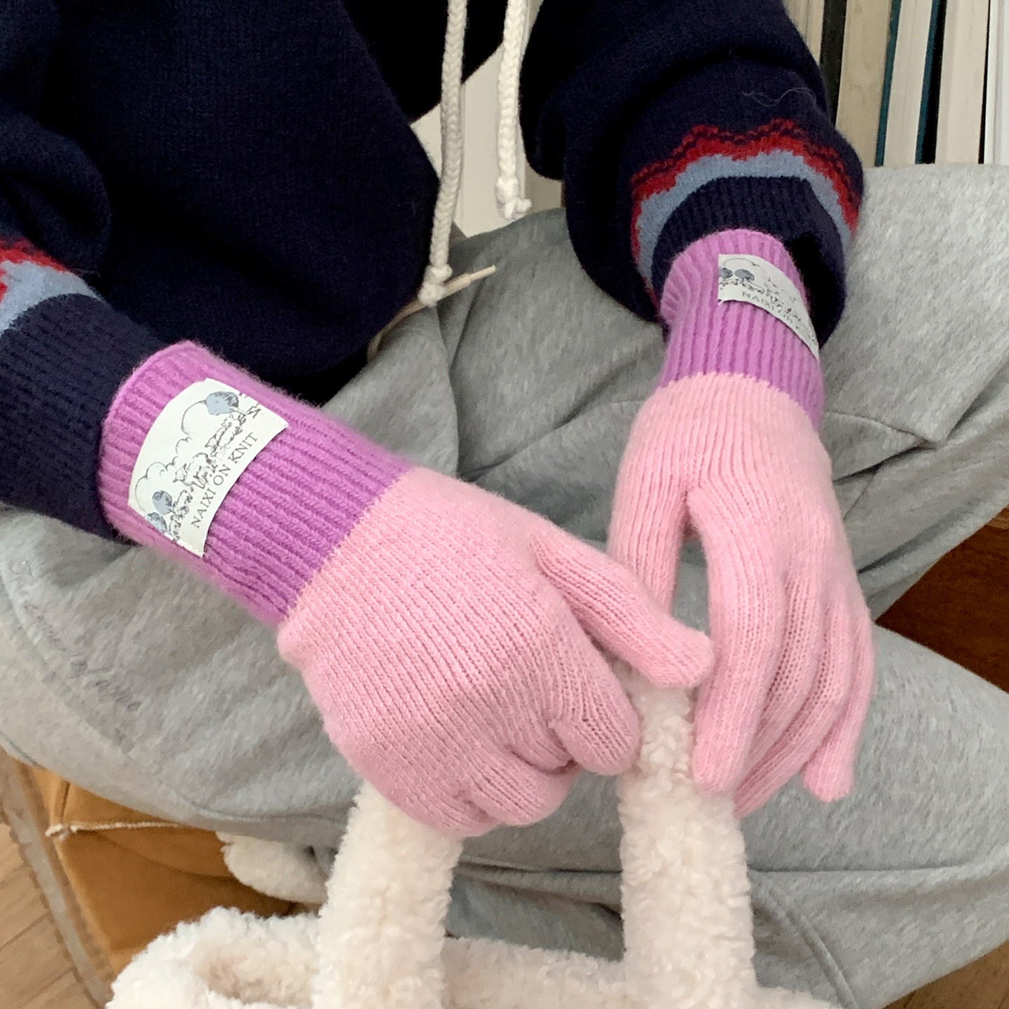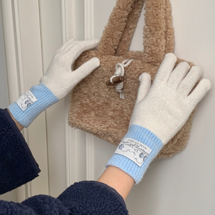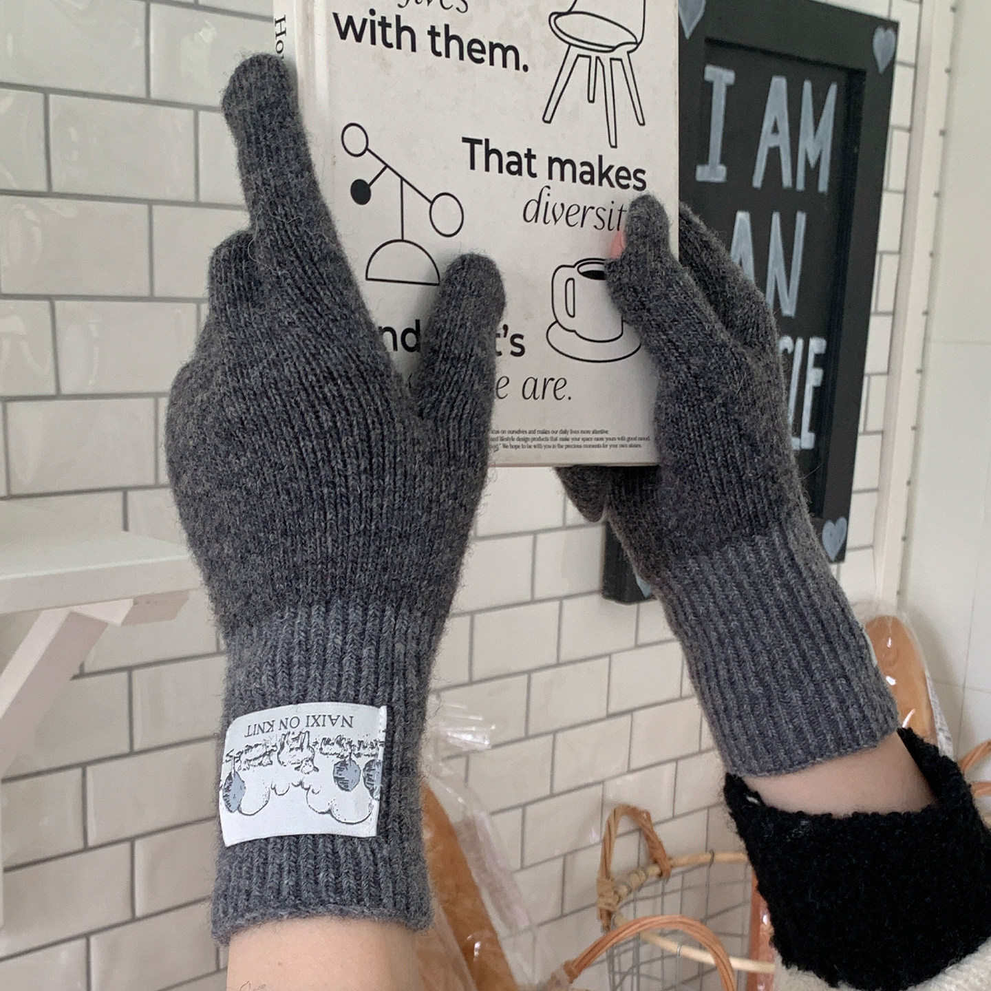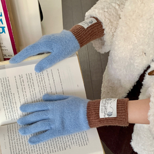 仿羊绒触屏针织手套女秋冬季 分指学生长护腕加厚保暖骑行防寒五指