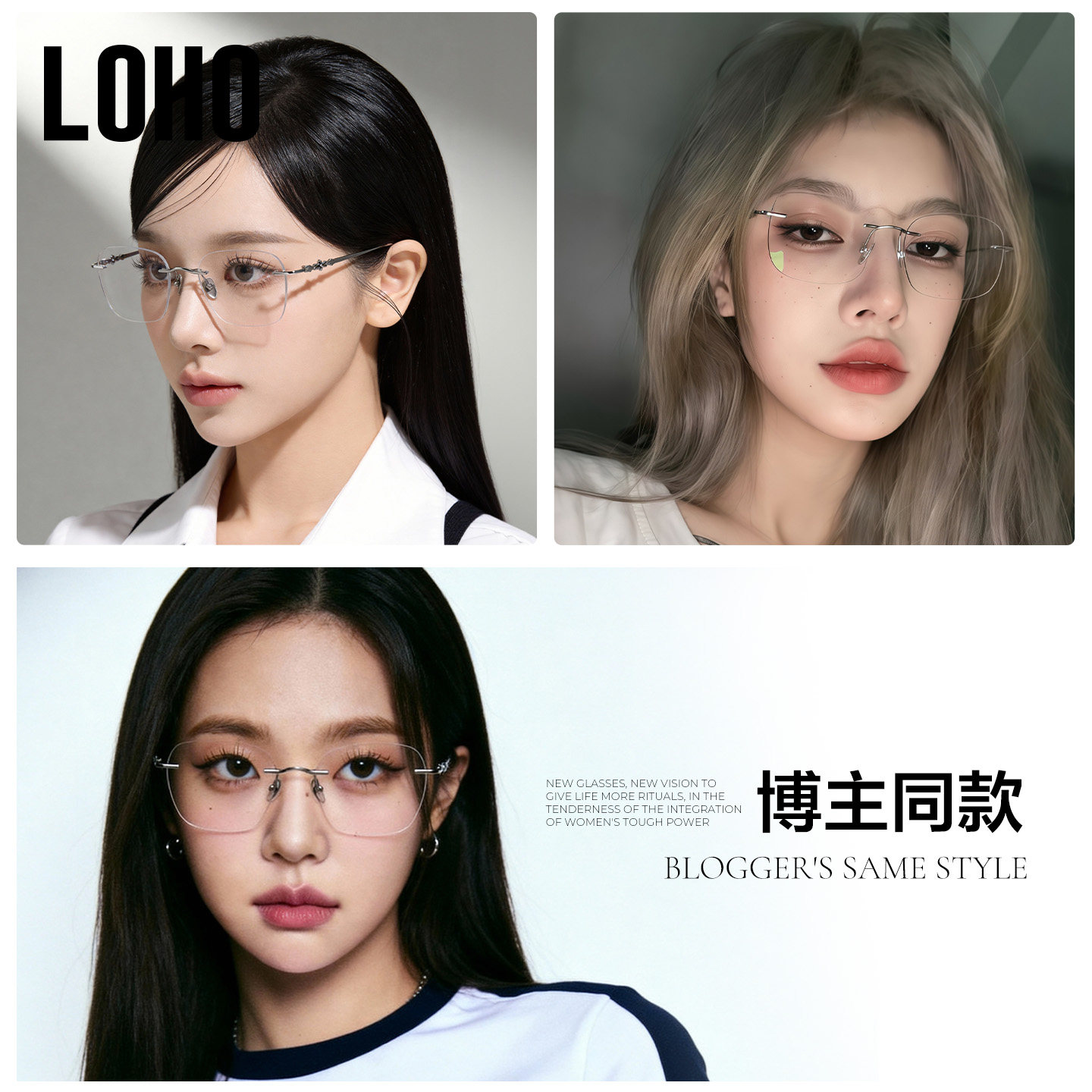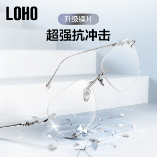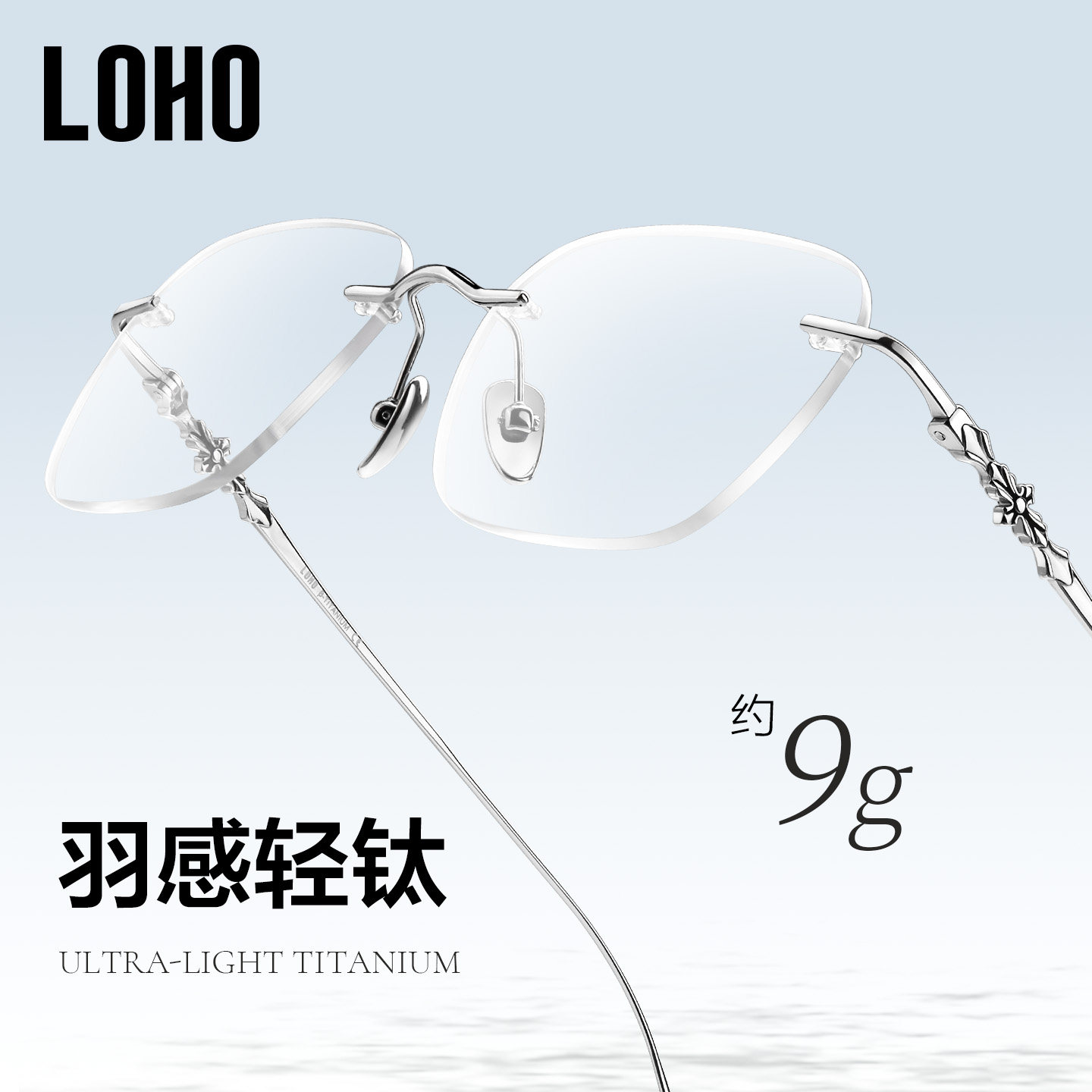 LOHO无框全钛眼镜女防蓝光超轻高智感方框近视眼镜 鸢尾花系列