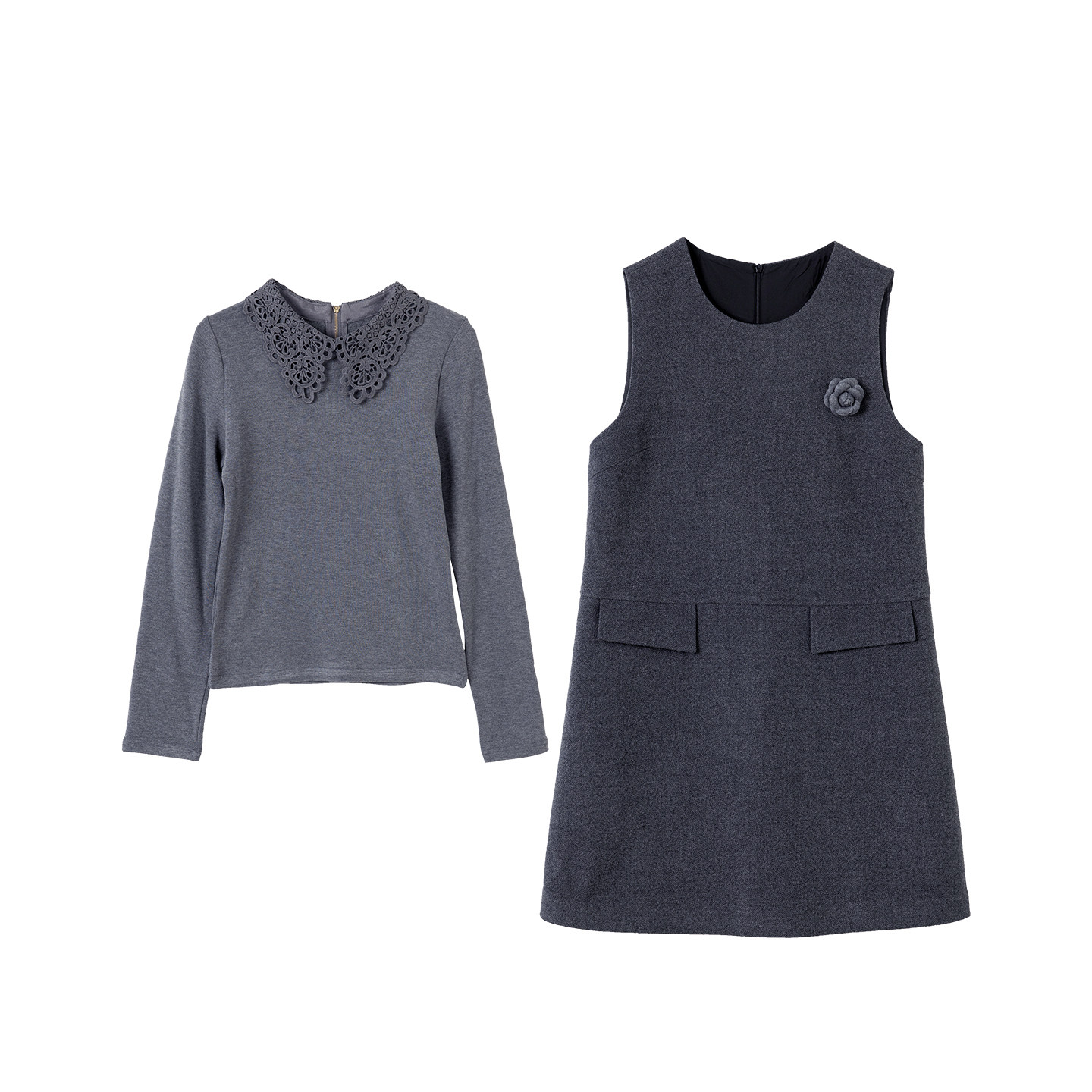 宝诗黎蕾丝拼接两件套连衣裙2026早春气质韩系老钱风时尚 背心裙