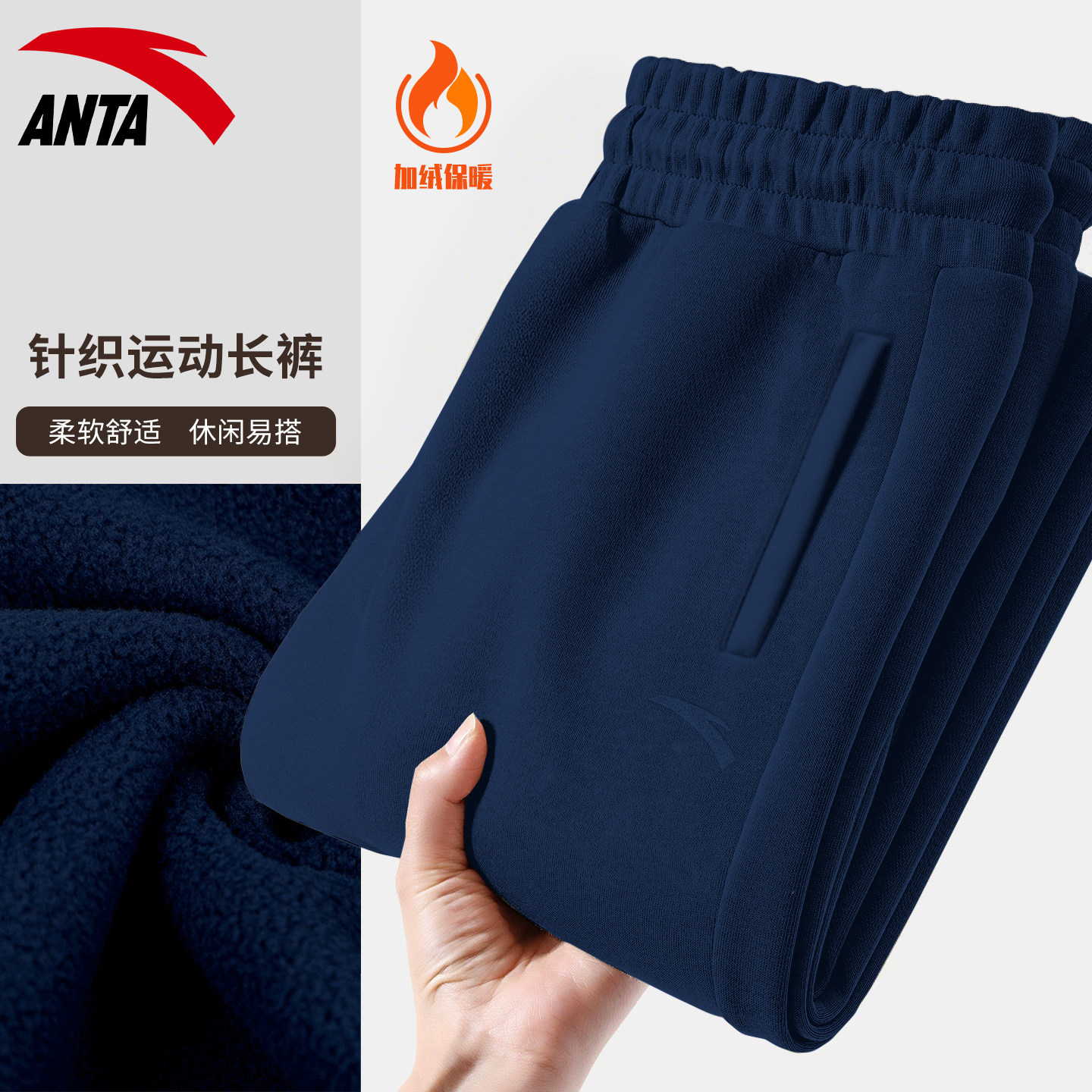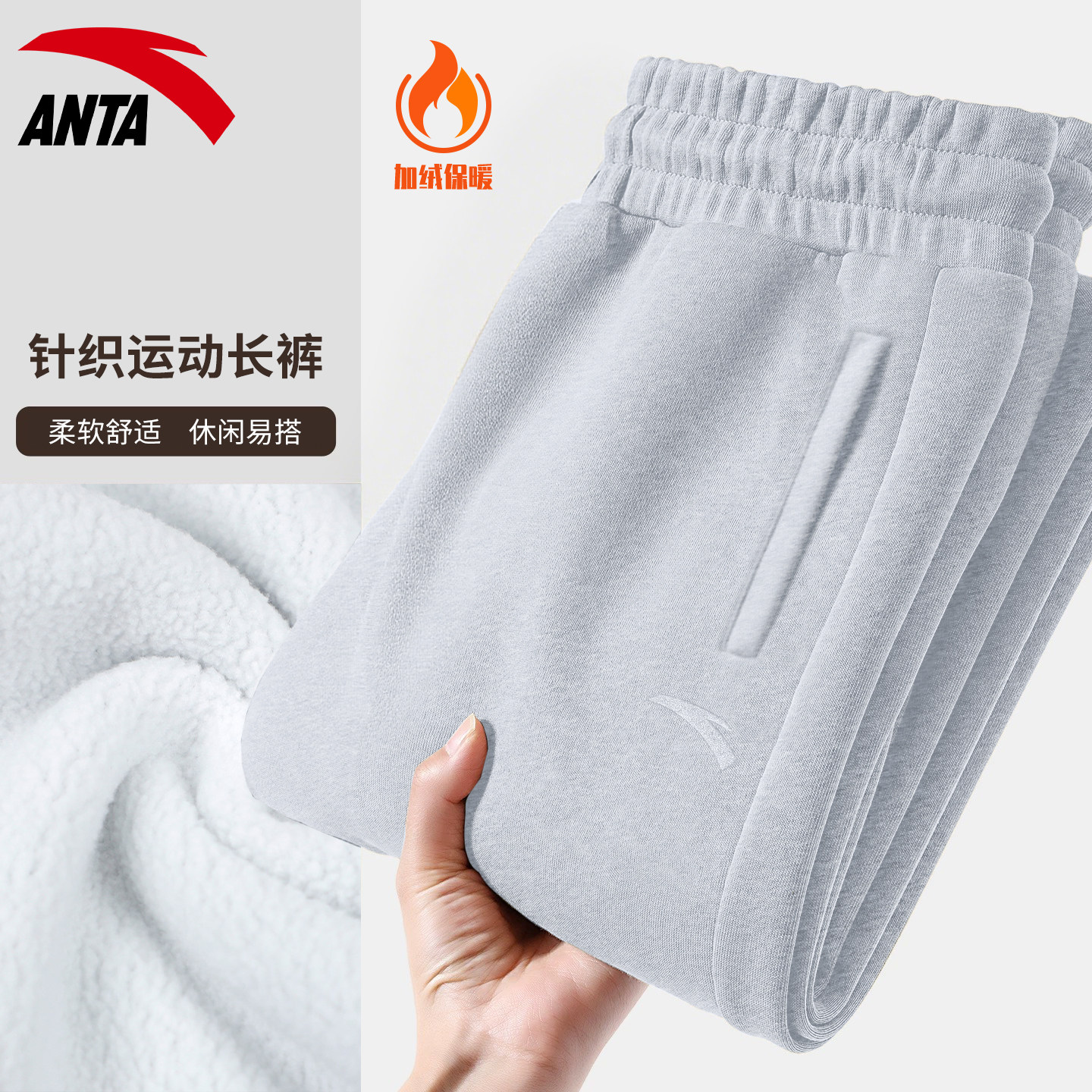 加厚束脚直筒裤 冬季 子男保暖运动裤 男士 子 安踏加绒卫裤 休闲裤 男款