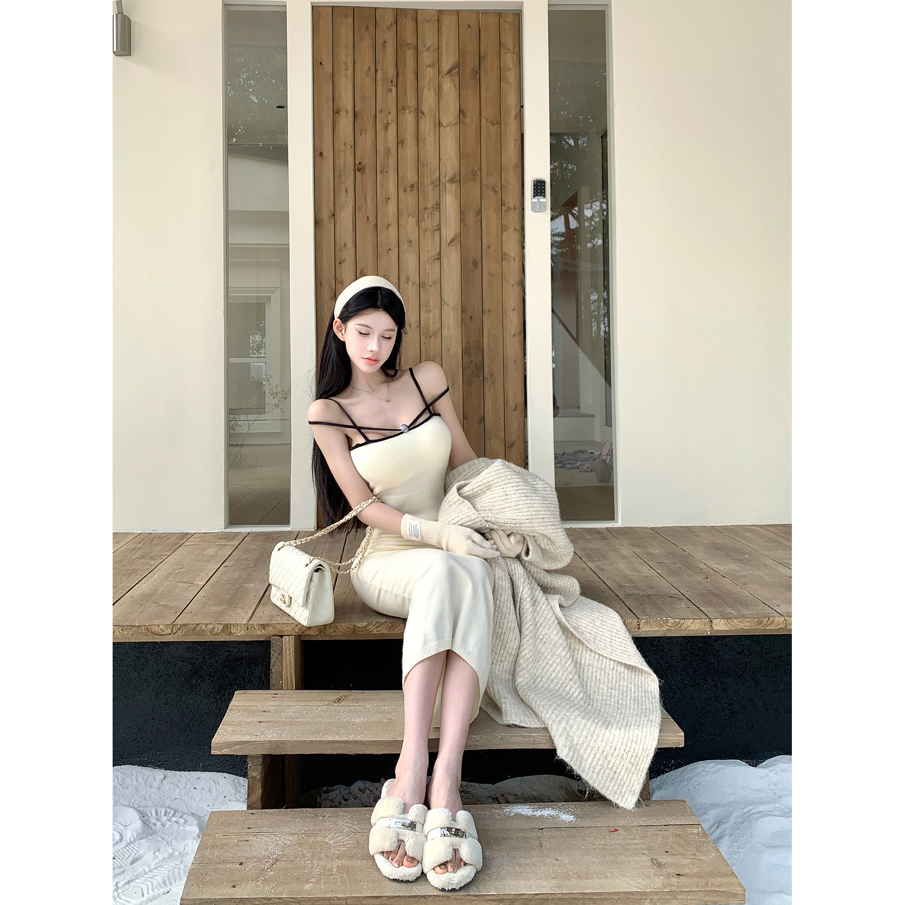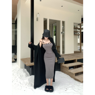 灰尘邓邓 内搭性感长裙包臀裙气质裙子 针织吊带连衣裙女2025冬季