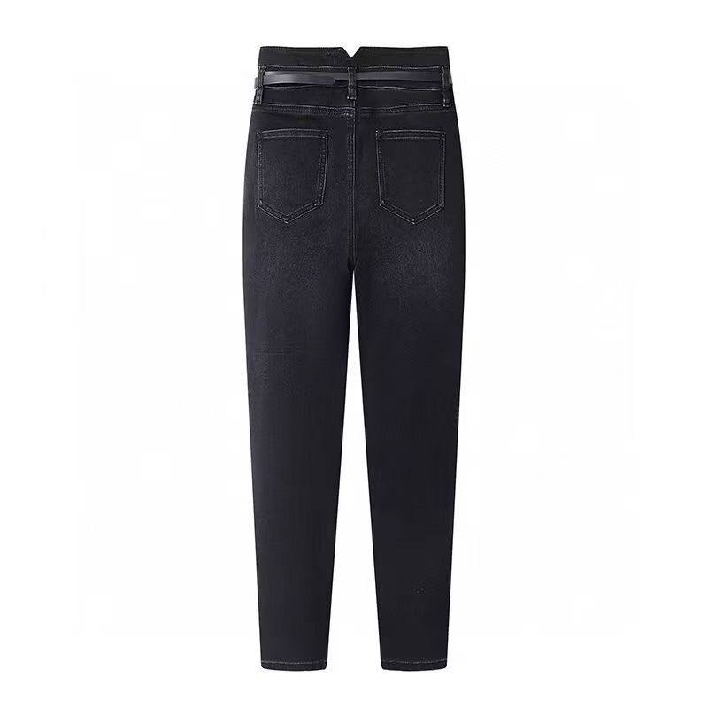 百搭高腰显瘦小脚加绒腰带牛仔裤 时尚 女 新款 DN高端定制2025冬季