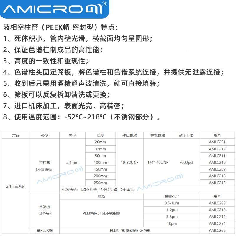 2.1×100mm液相色谱柱空柱 高压小口径分析柱 不锈钢分析柱空柱管