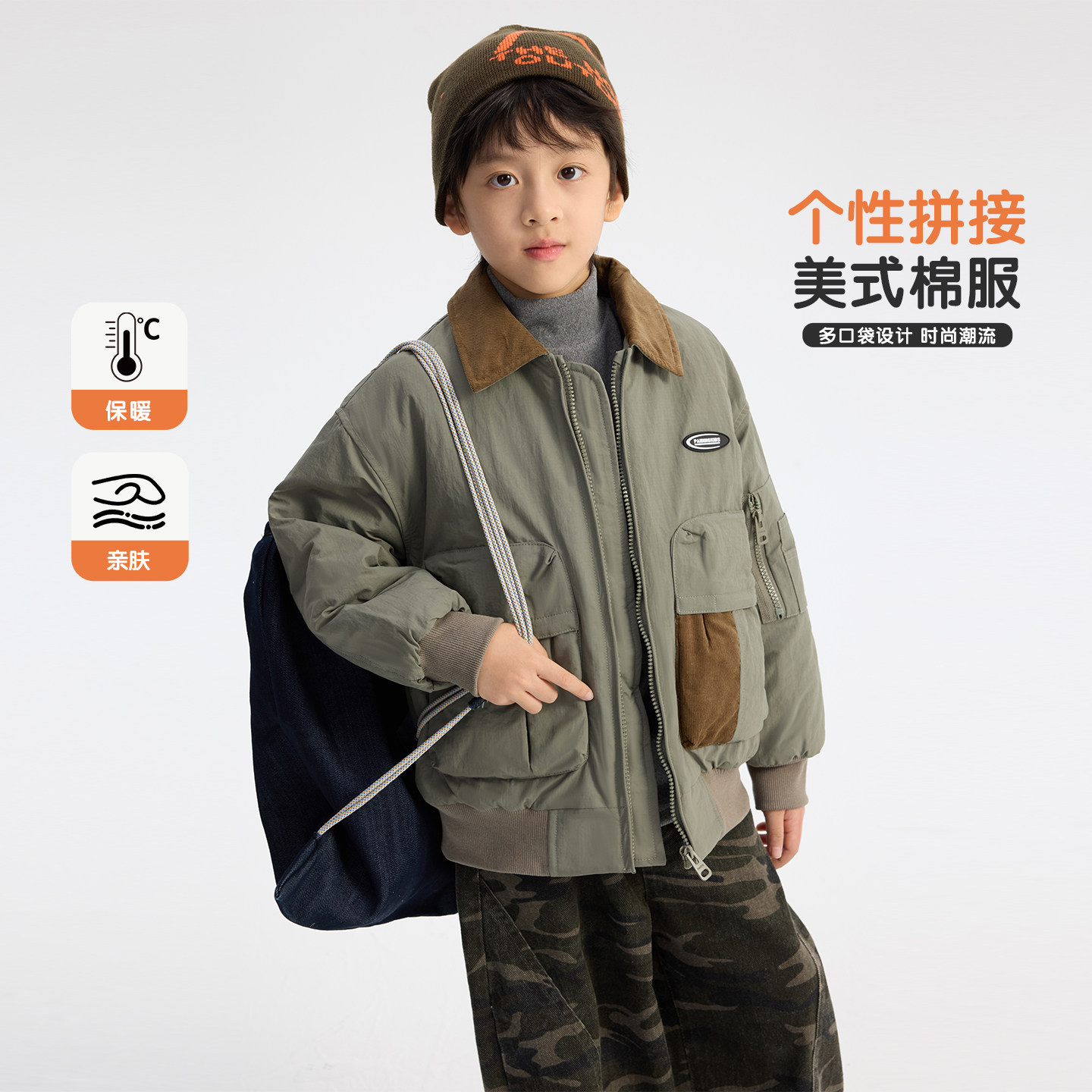 夹棉加厚保暖外套冬装 派町童装 男童棉衣儿童棉服保暖夹克2025新款