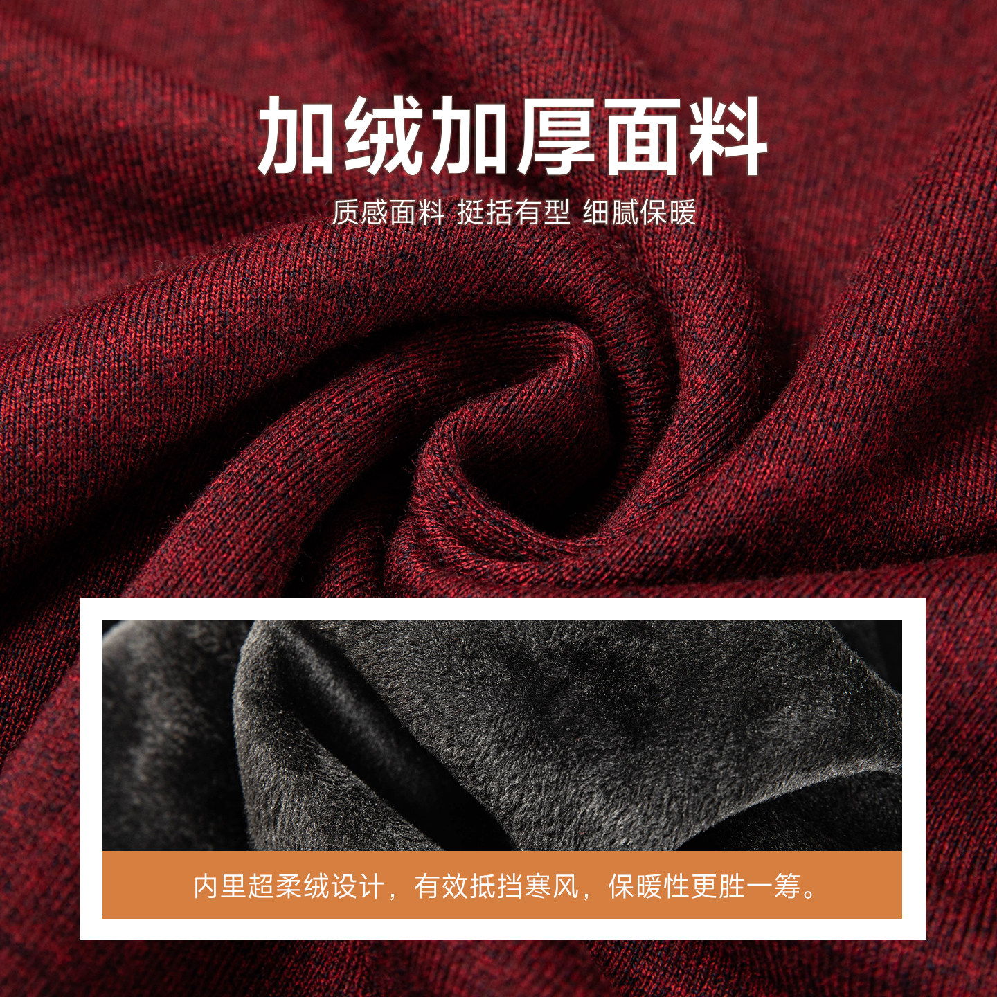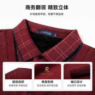 绵羊毛打底针织衫 加绒毛衣中年男士 格纹假两件秋冬季 梦特娇男装