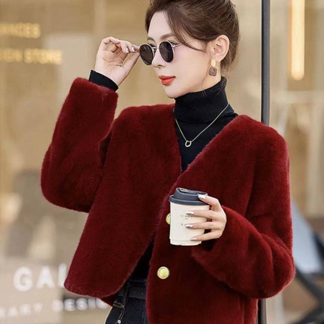 CulturE小众轻奢防貂毛毛绒加厚外套金属设计感宽松纯色短款 皮草