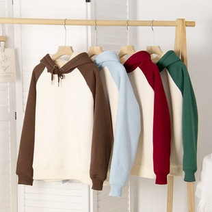冬季 上衣2025新款 拼色女装 秋冬款 棉致长袖 加绒保暖冬装 卫衣加厚款