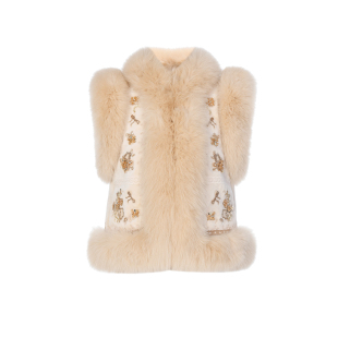 千金风狐狸毛拼接绣花马甲 lefame拉飞姆中式 祝绪丹同款