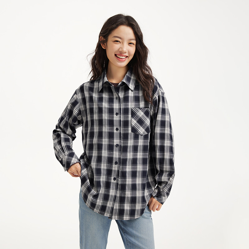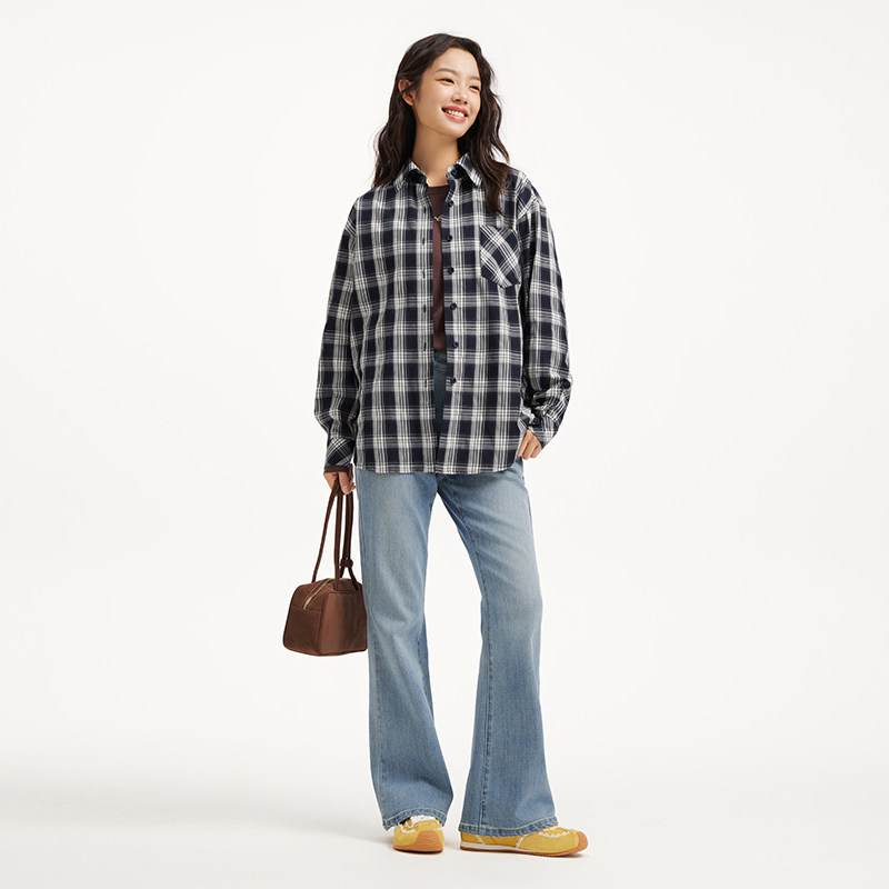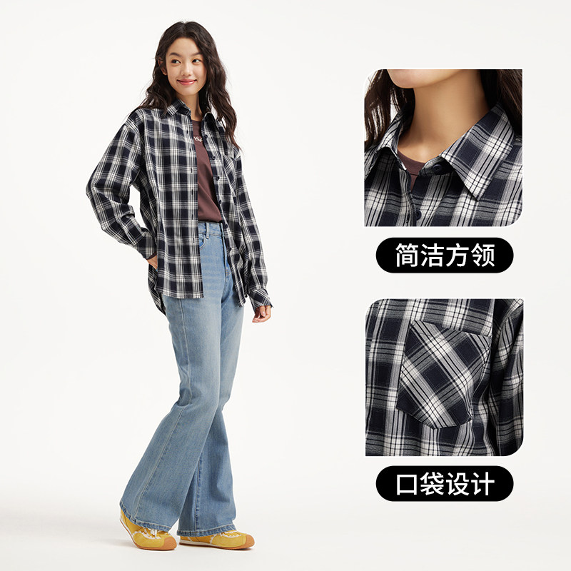 复古格调日常百搭 女士休闲方领格纹衬衫 热风2026年春季 新款