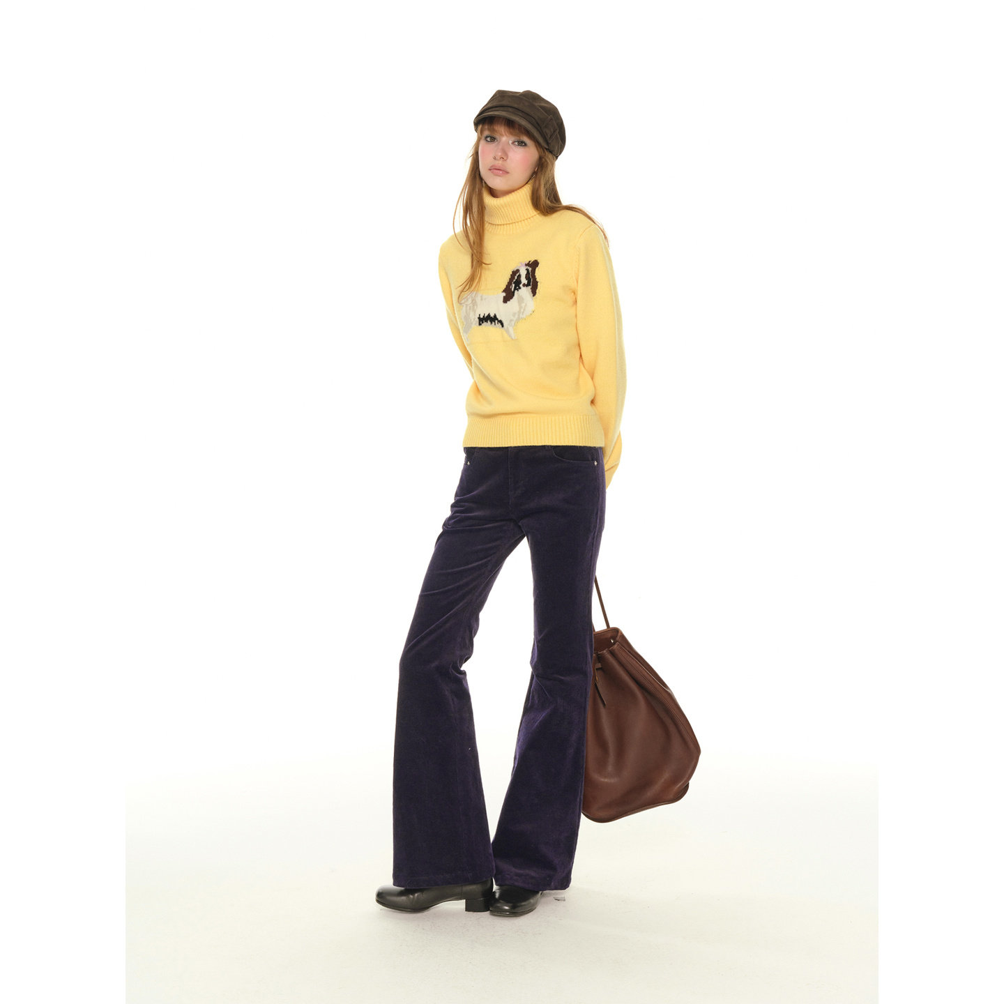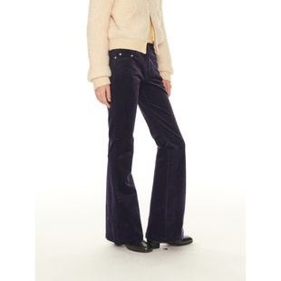女冬季 复古灯芯绒低腰休闲裤 新款 百搭修身 UNRETRO 微喇长裤 美式