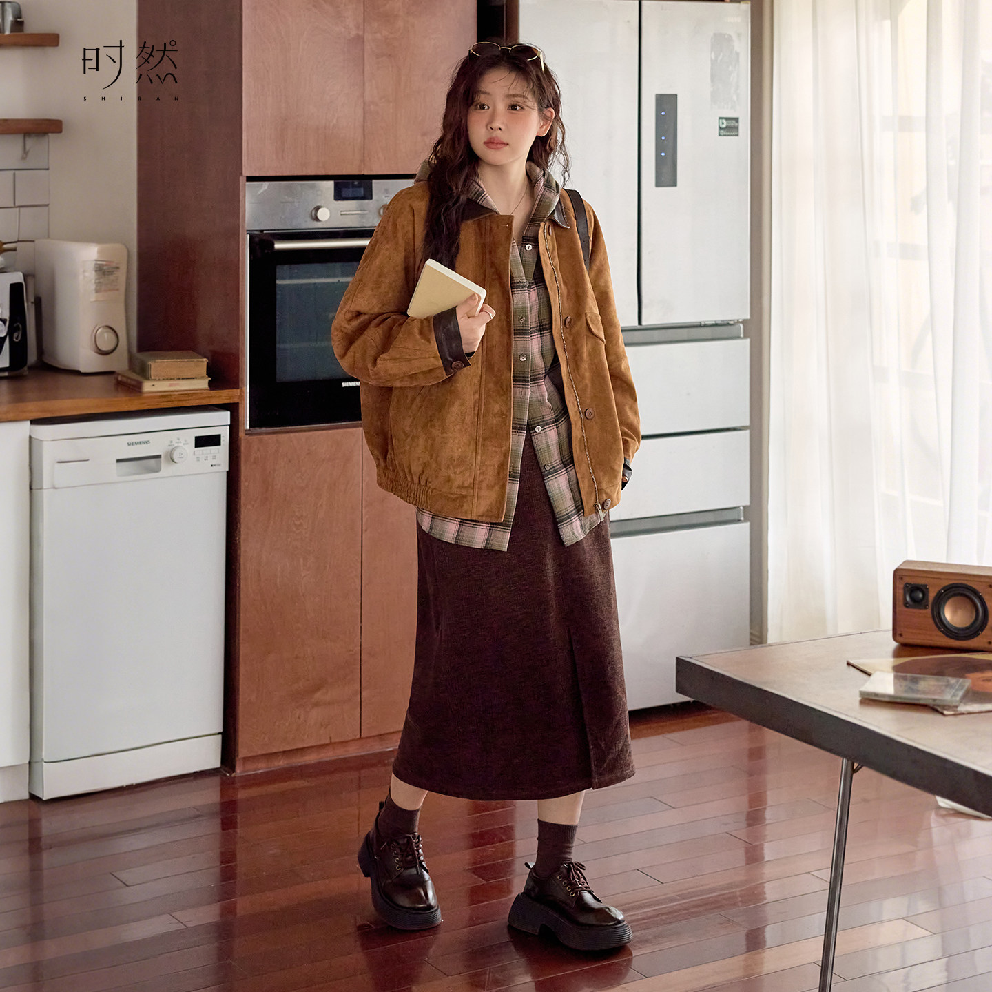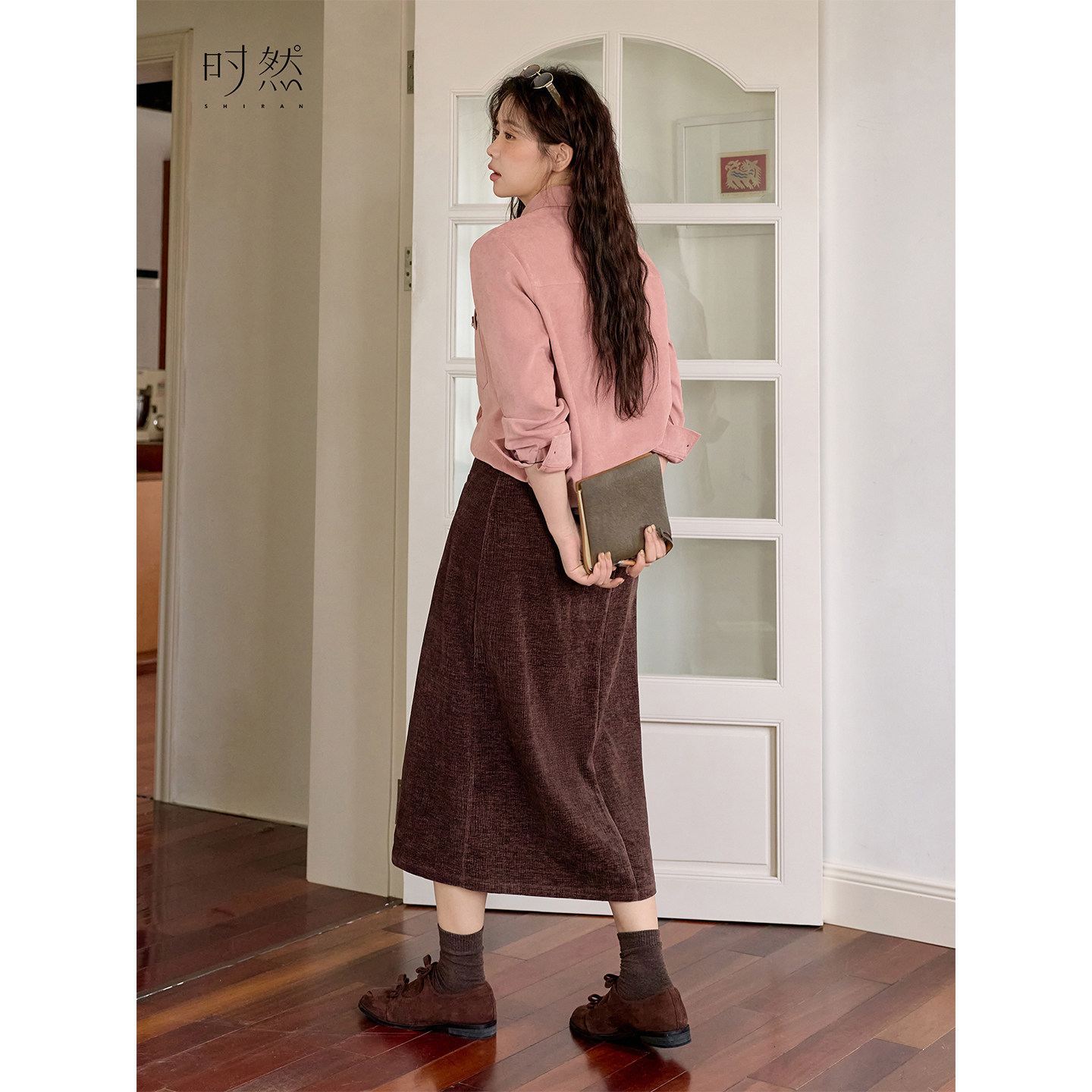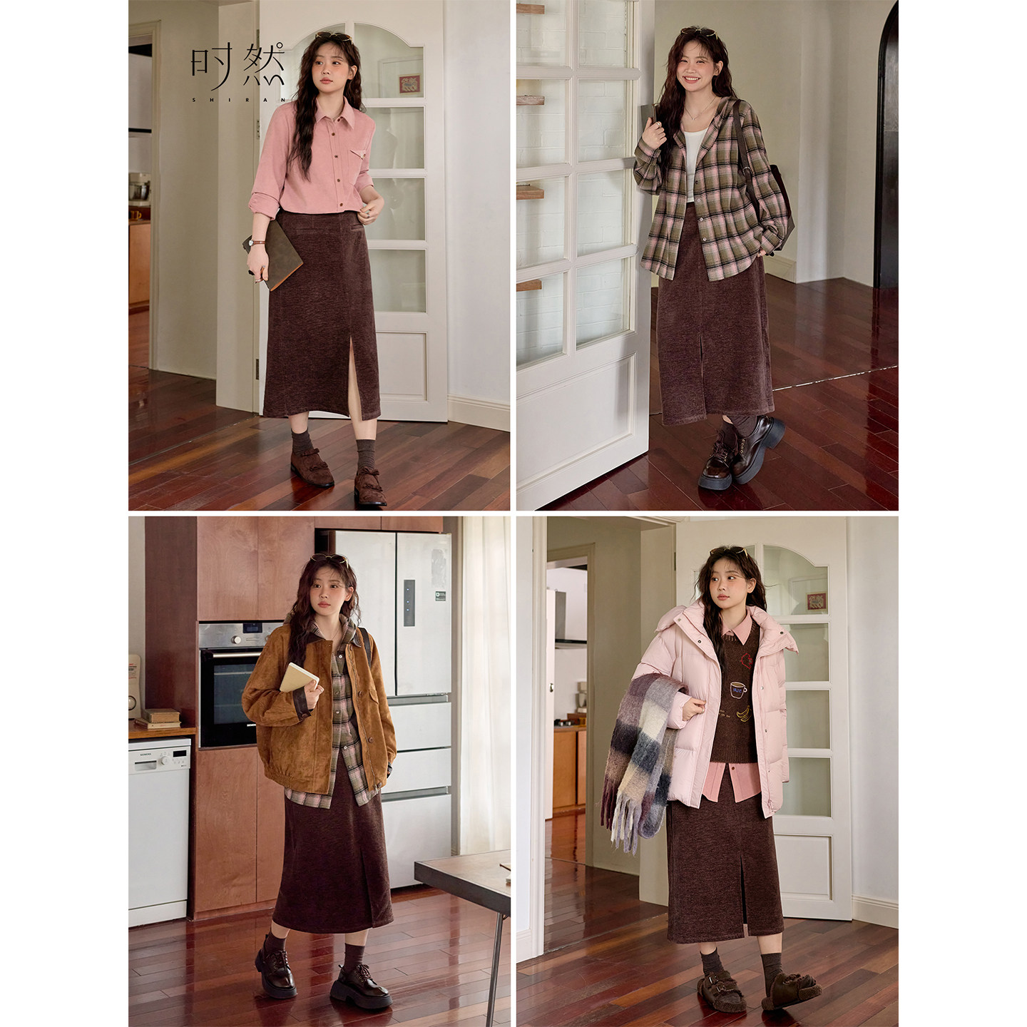 高腰直筒A字裙雪尼尔柔软显瘦半裙 新款 时然大码 微胖MM2026年冬季