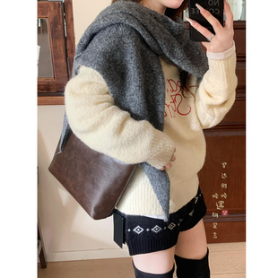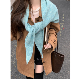 织间隅暖 高级感围巾围脖 粉色羊绒三角巾外搭披肩女秋冬2025新款