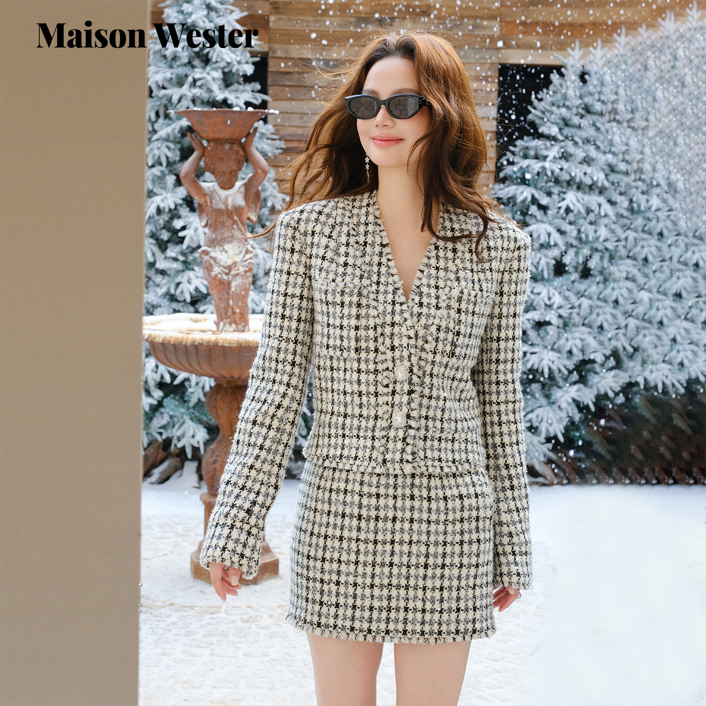 外纹短裙套装 Maison 千金风外套粗花呢短款 新品 Wester2025年冬季