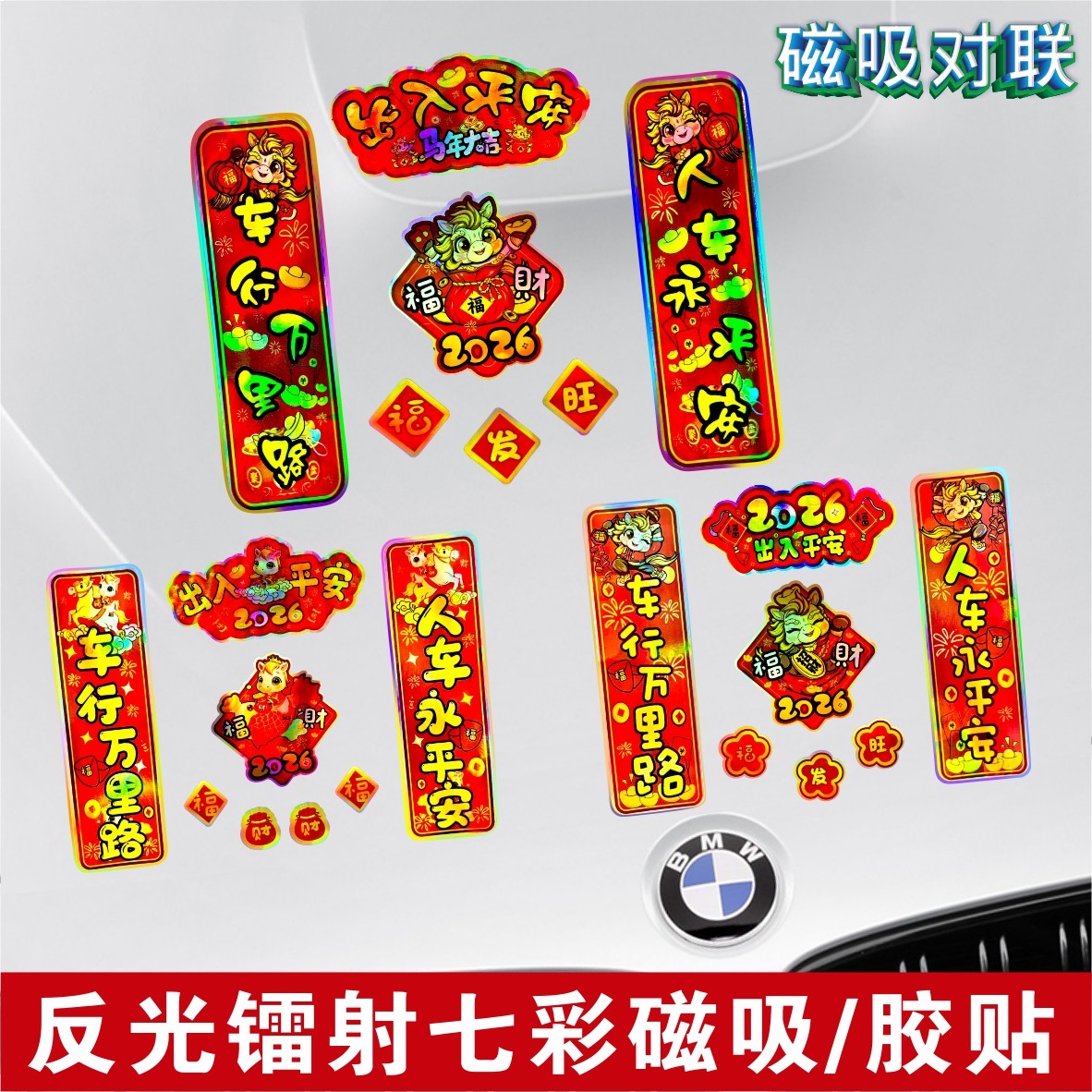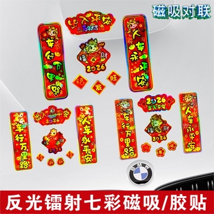 2026新款 年对联车贴新年磁吸马年镭射反光新年春节福字创意车贴纸
