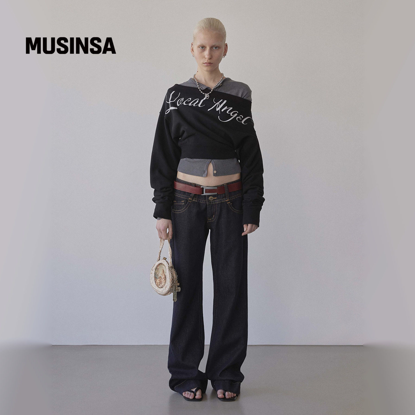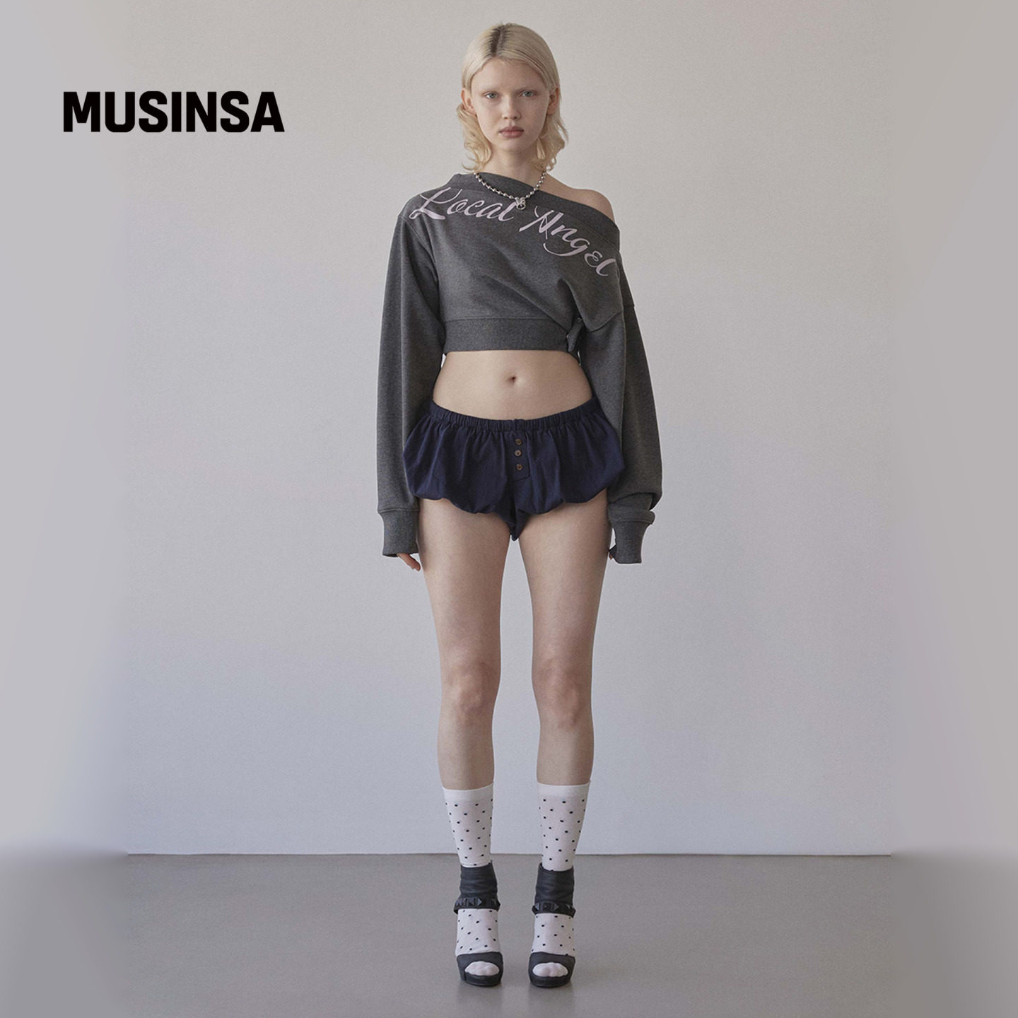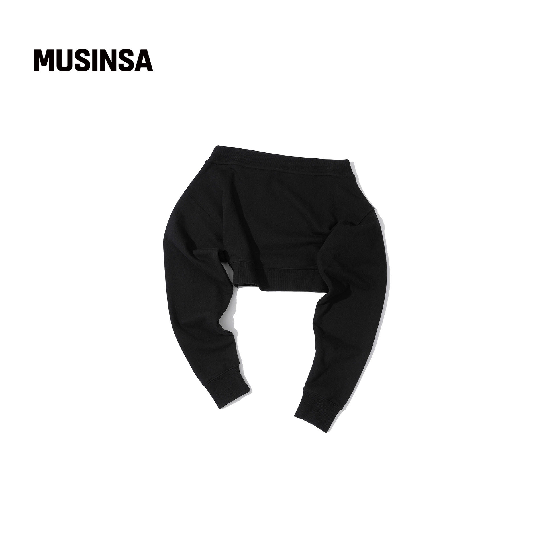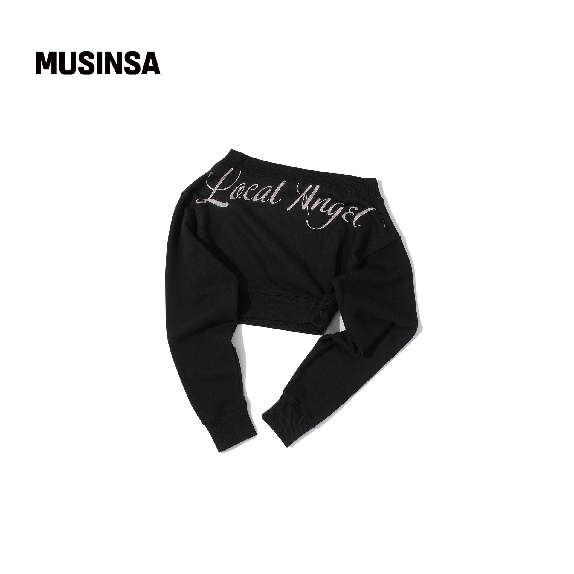 SCULPTOR 辣妹上衣MUSINSA 韩国25秋冬黑色露肩字母刺绣卫衣女短款