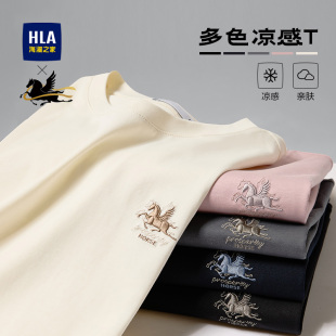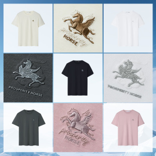 HLA海澜之家敦煌短袖 凉感刺绣马踏祥云白色短t男女 T恤26春夏新款