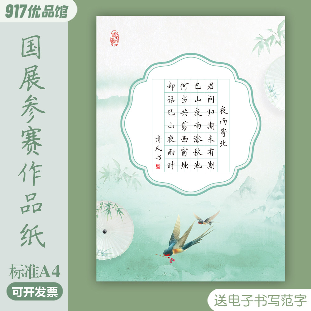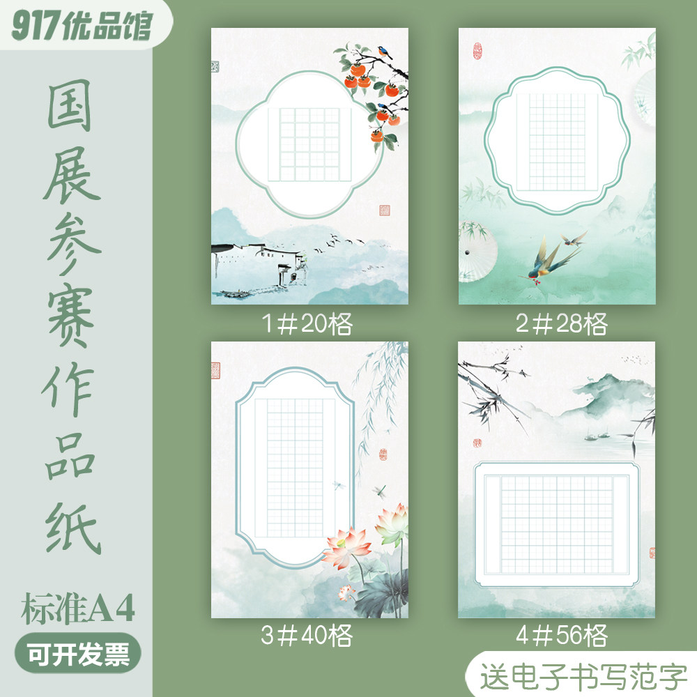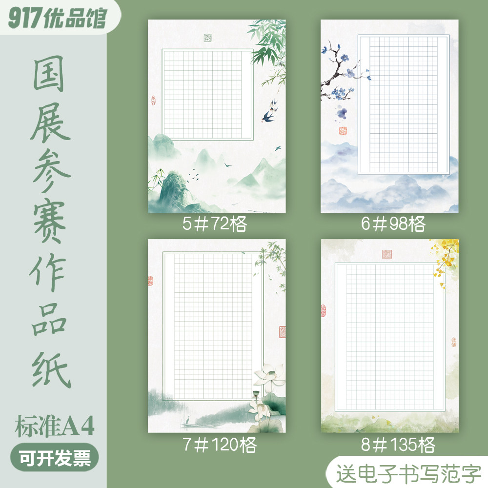 六品堂硬笔书法练习用纸作品纸A4比赛专用纸练字本米字格中国风小学生书写古诗田字格横版 钢笔纸张书法纸 竖版