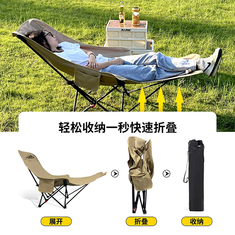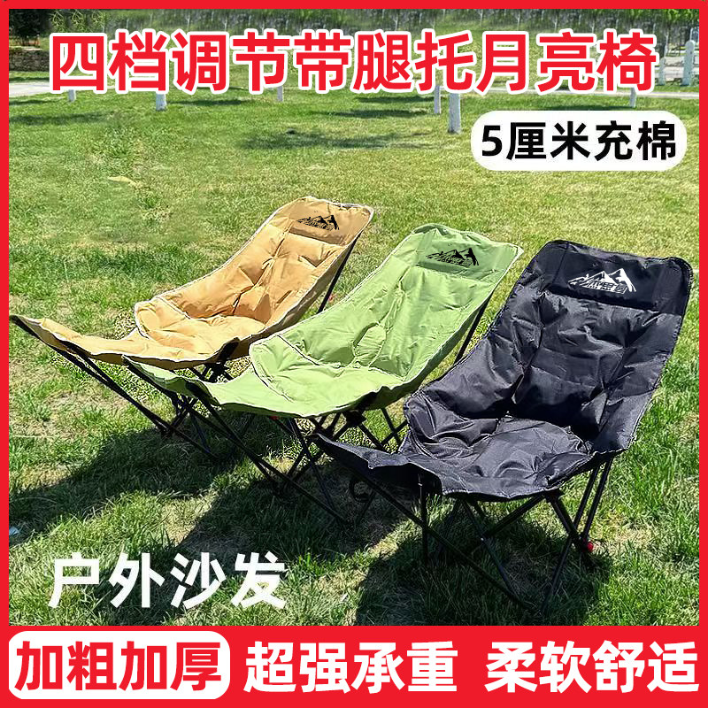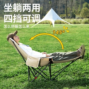 户外野餐椅可调节折叠椅办公舒服午休躺椅露营便携椅带腿拖月亮椅