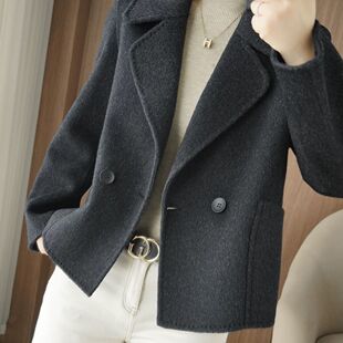 2025爆款 气质妈妈装 双面呢短款 领时尚 外套女安哥拉红 西装 秋冬新款
