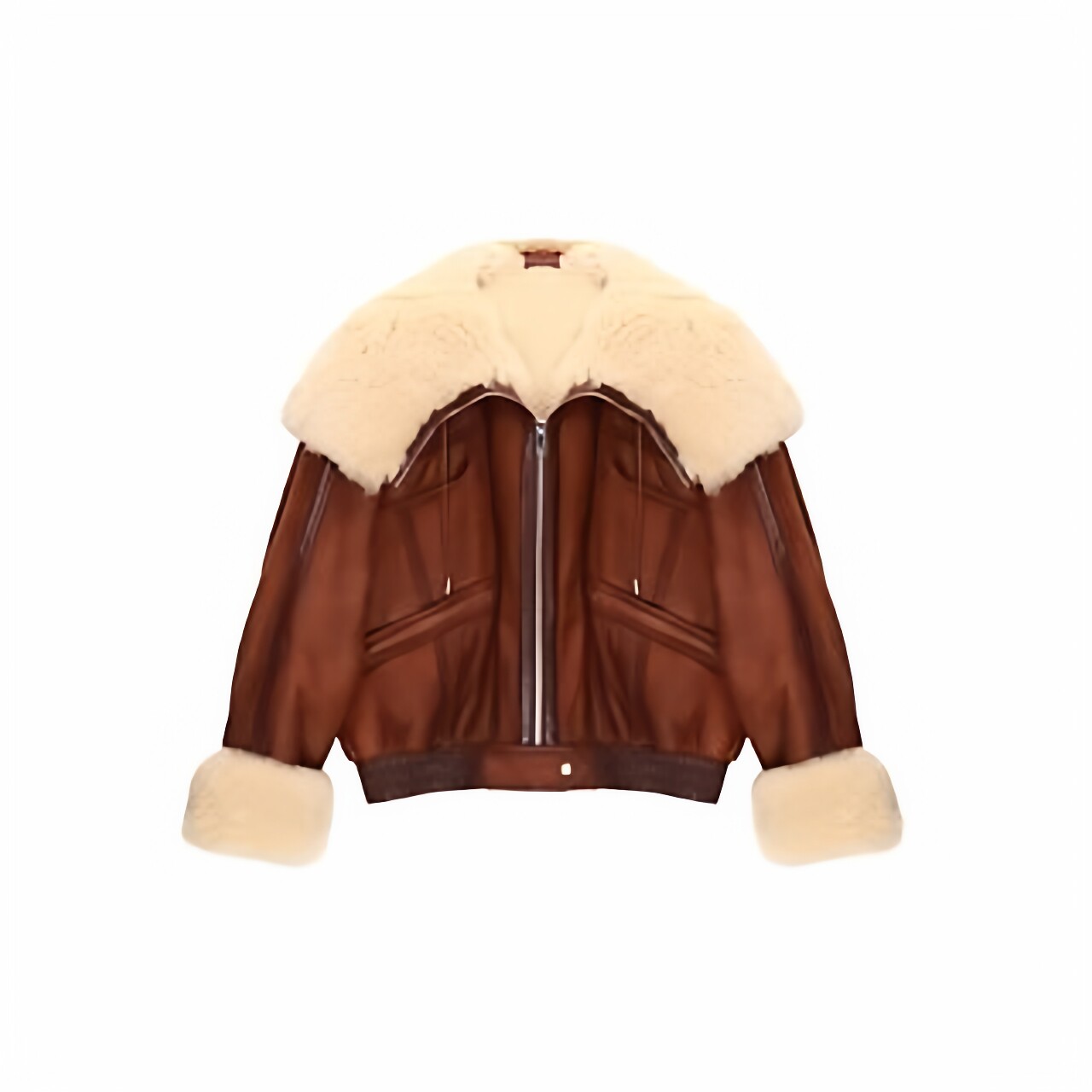 天使之翼大美真皮毛麦斯毛领洋气连帽慵懒复古外套 弓ECHO