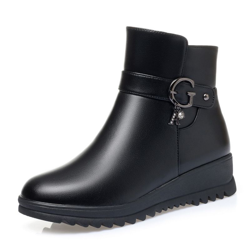 女春秋加绒新款 女士软皮女靴圆头中筒靴雪地靴软皮粗跟平跟短靴子