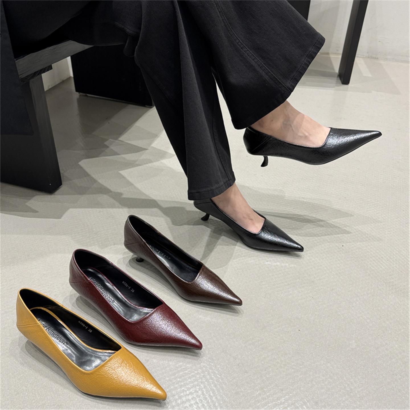 百搭通勤工作玛丽珍鞋 2025秋季 时尚 尖头细跟中跟浅口单鞋 气质 新款