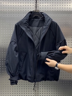 立领棉服男潮牌时尚 纯色工装 百搭保暖加厚外套夹克 新款 棉衣男冬季