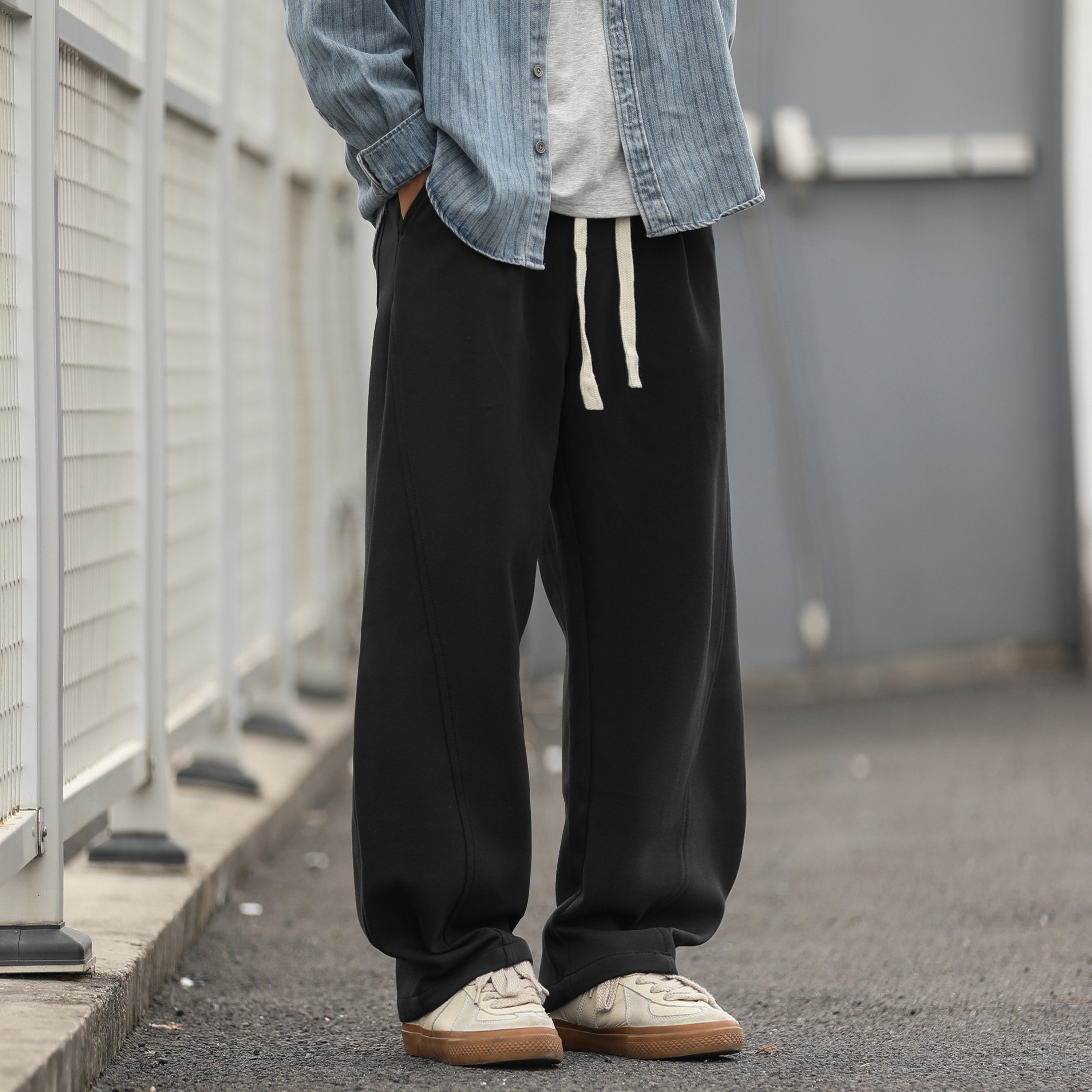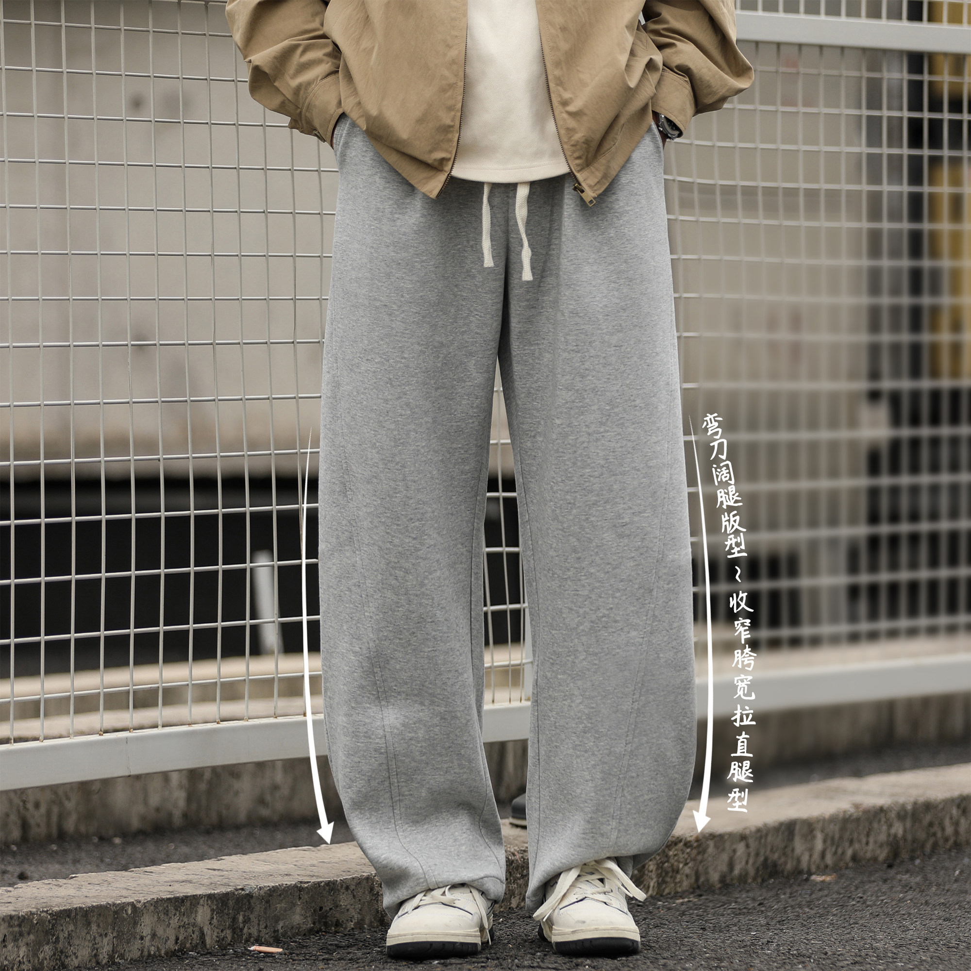 长裤 380g嘿马七作美式 休闲弯刀裤 高街分割宽松卫裤 子 复古秋冬男士