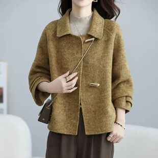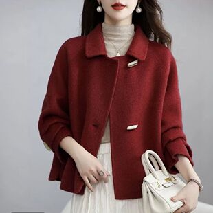 双面大衣羊毛短款 小个子秋冬牛角扣上衣 双面外套毛呢简约2025新款