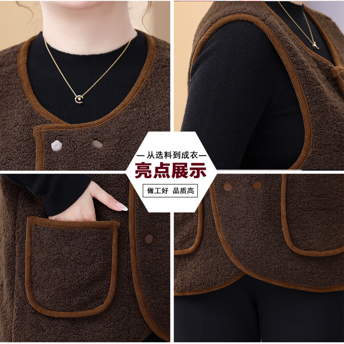 胖妈妈秋冬新款 百搭保暖遮肉坎肩上衣 双排扣加绒马甲加肥加大时尚