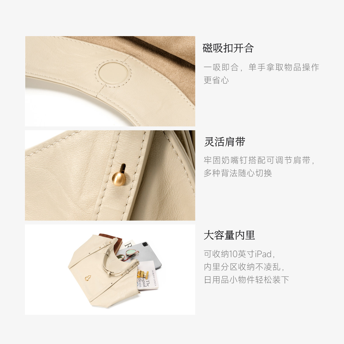 电脑大容量通勤包 装 BAMPO半坡禾序托特包 头层牛皮单肩包2026新款