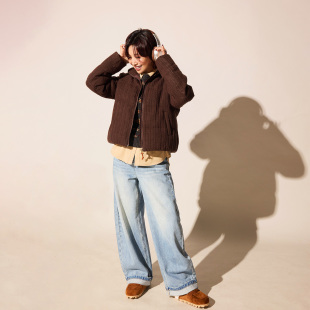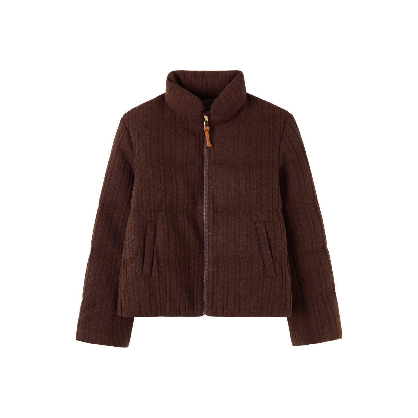 ise 针织绞花美拉德咖色保暖立领羽绒服K2541228 精致锁温