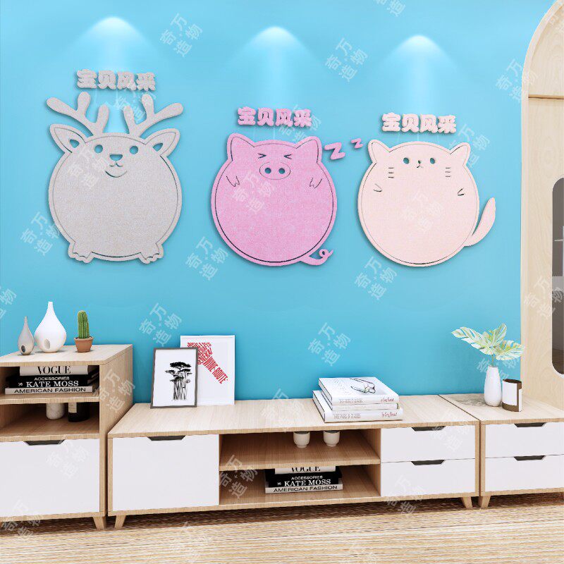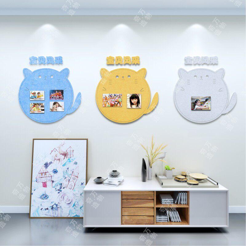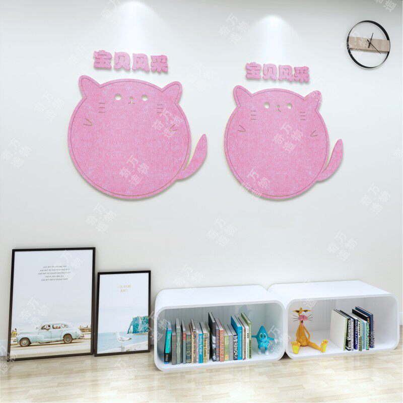 毛毡创意幼儿园儿童房间3D立体墙贴装 饰展示板留言板圆猫咪照片墙