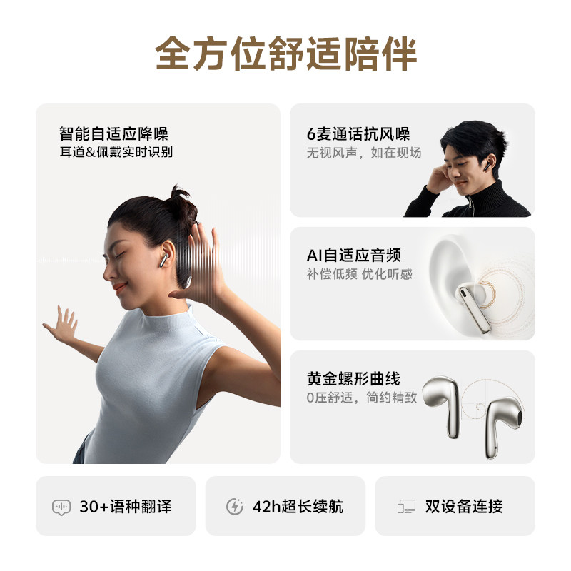 适用小米苹果 超长续航运动新款 QCY E50蓝牙耳机降噪无线半入耳式