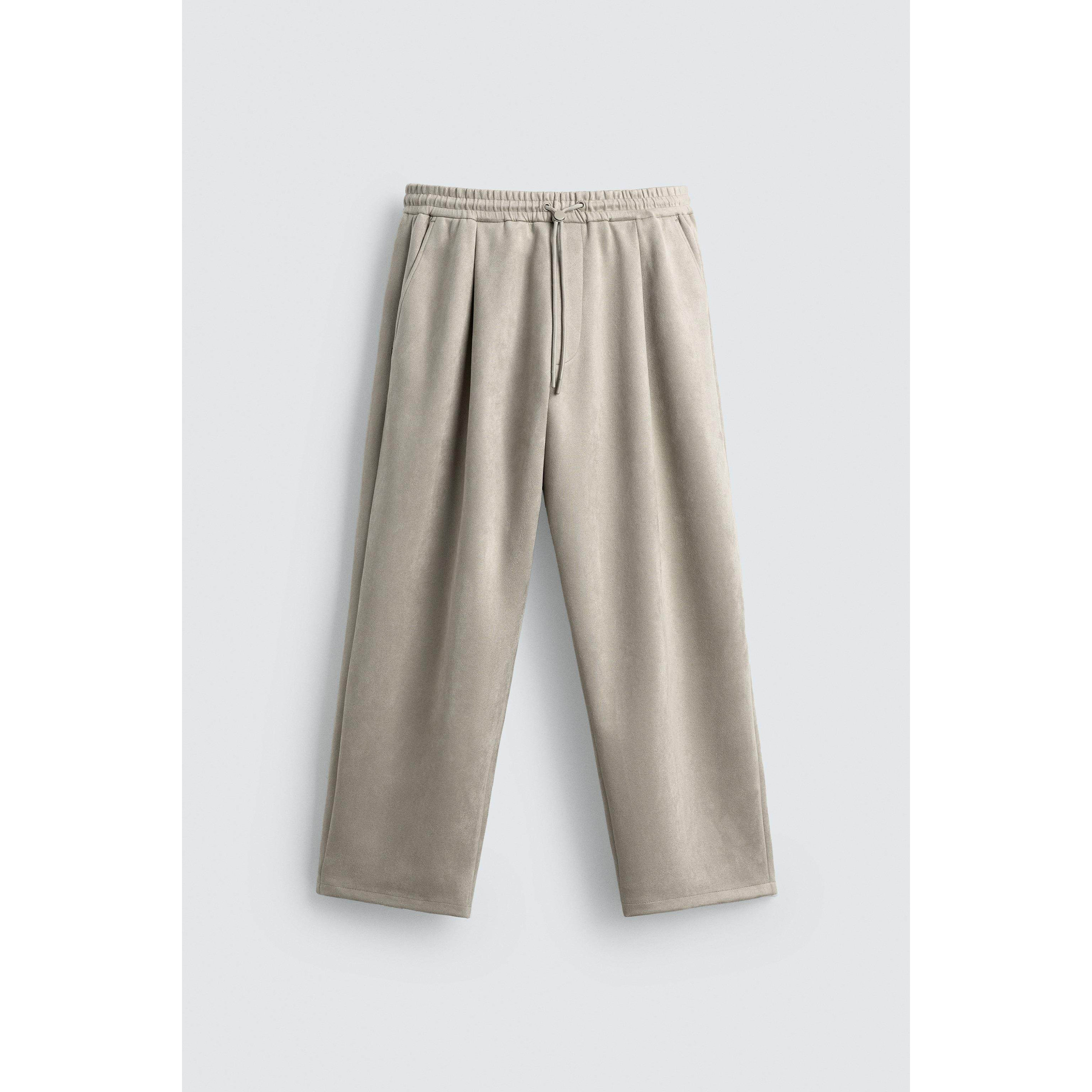 新品 秋季 男装 反绒皮效果宽松阔腿系带褶裤 811 3046385 2025