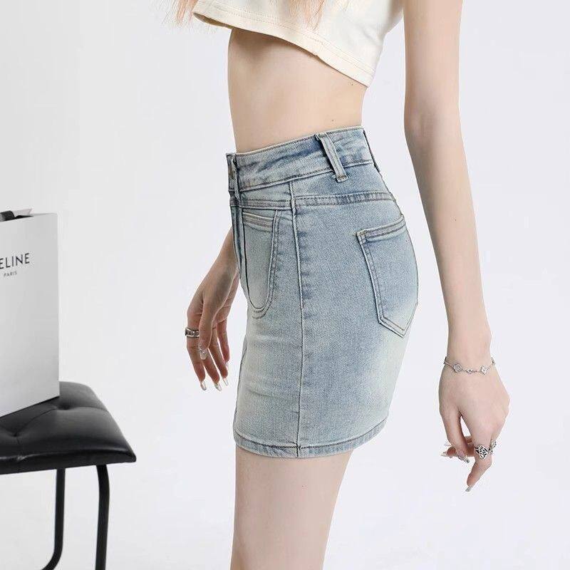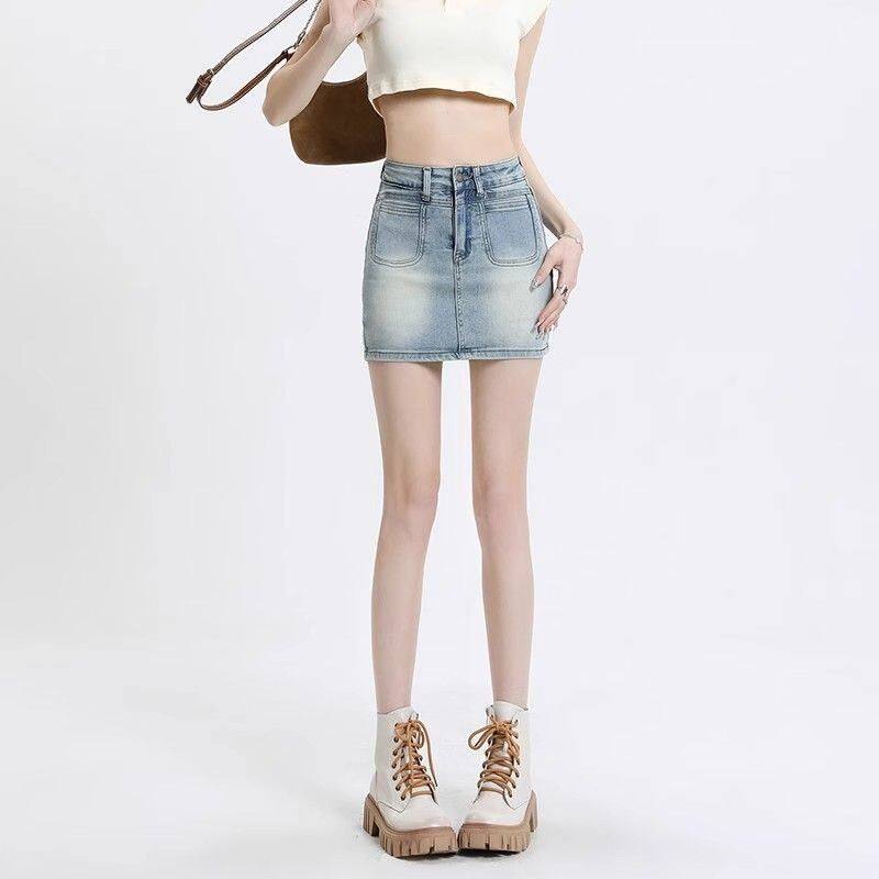 高腰宽松显瘦小个子a字短裙 新款 韩版 设计感牛仔半身裙女2024夏季