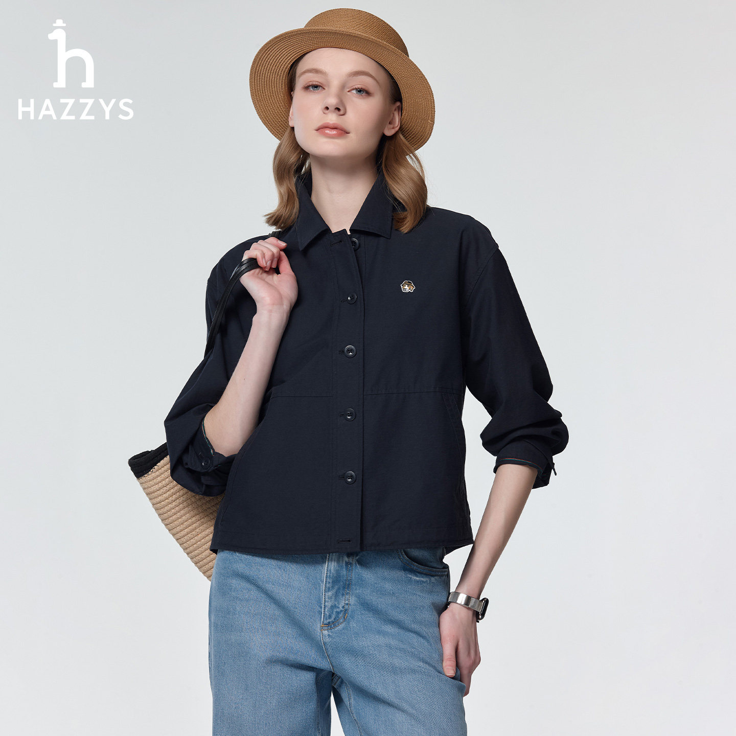 休闲时尚 女士春季 衬衣宽松通勤翻领上衣外套 衬衫 Hazzys哈吉斯长袖