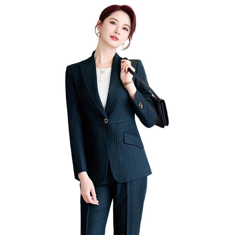 女春秋季 套装 新收腰职业气作质西服外套KY888西工服 款 条纹装