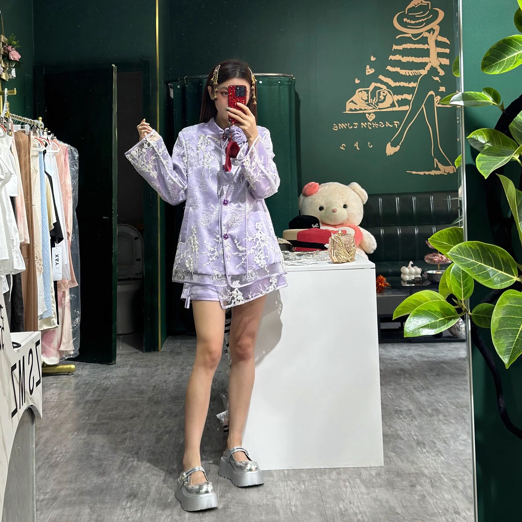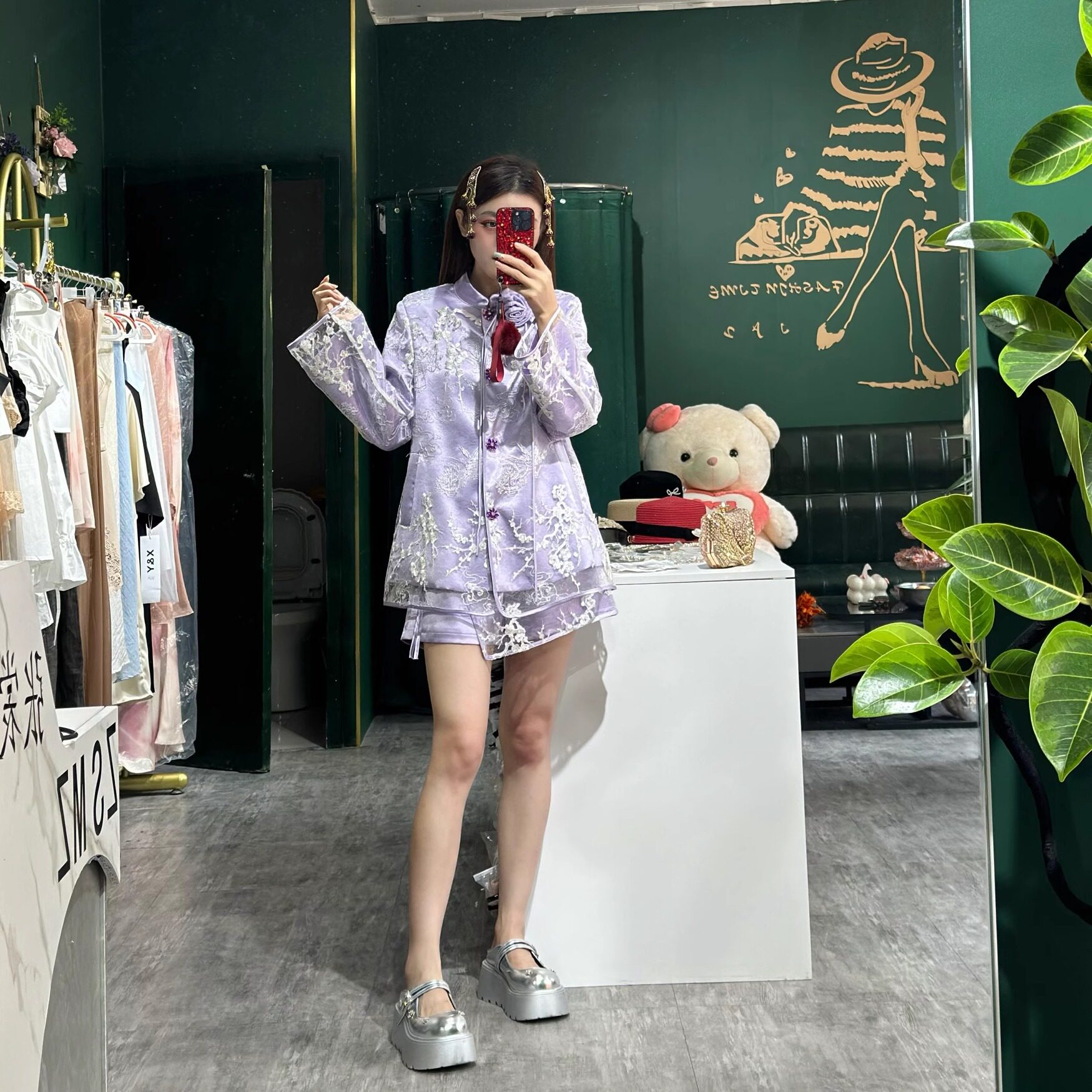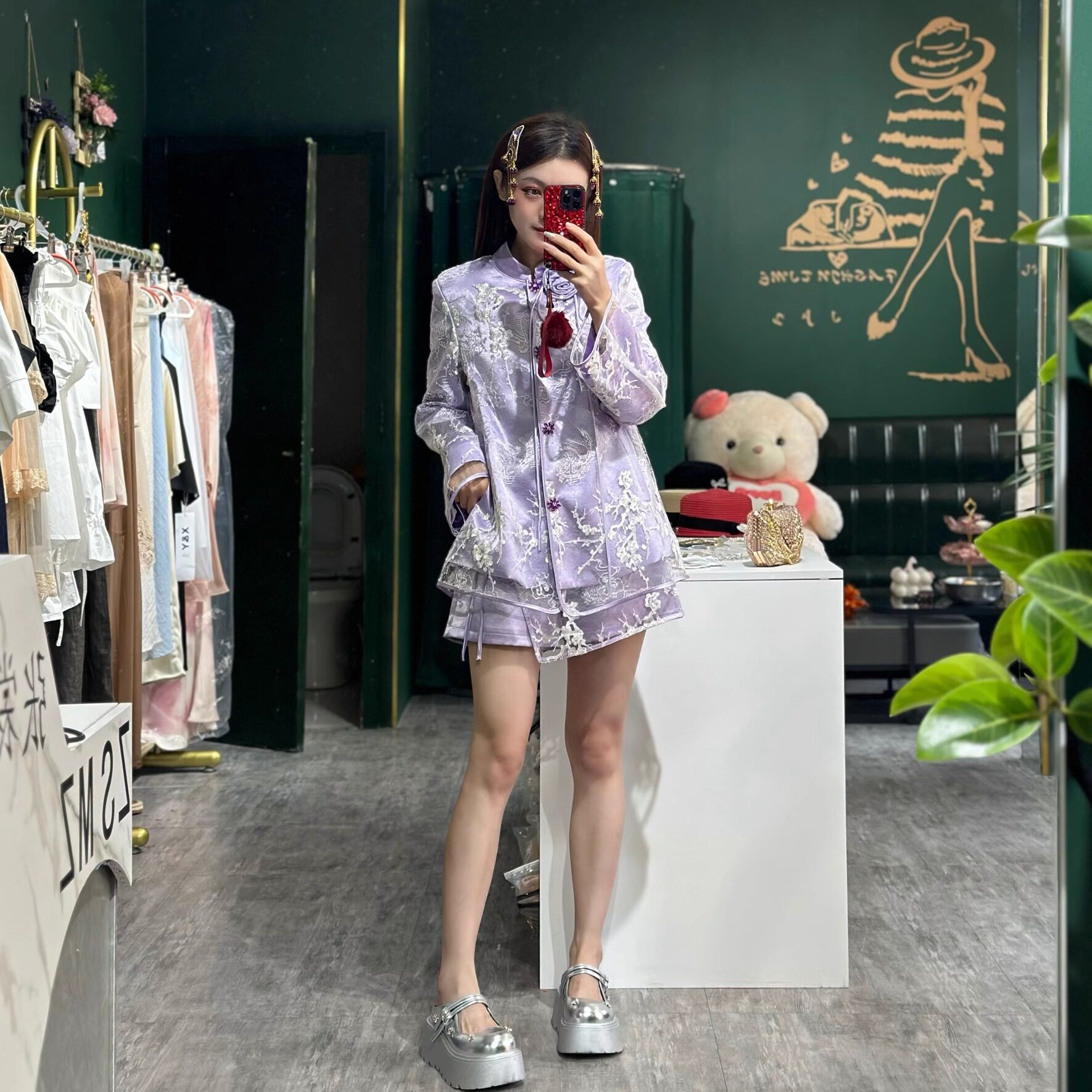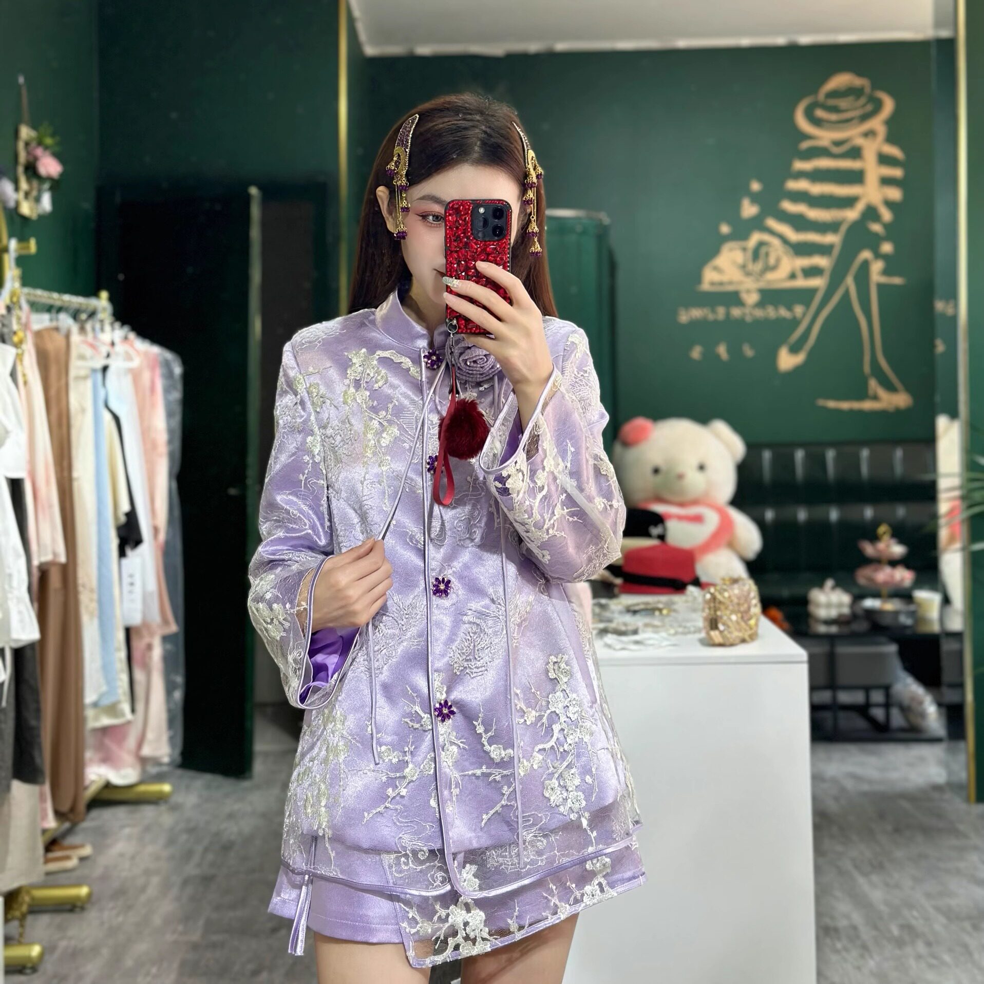 国风上衣套装 裙两件套套装 2025春夏新款 外套短裤 女 紫色新中式 中式