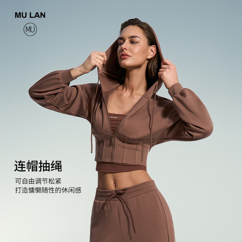 MU沐岚连帽卫衣卫裤 运动外套女户外健身跑步瑜伽服上衣舒芙蕾 套装