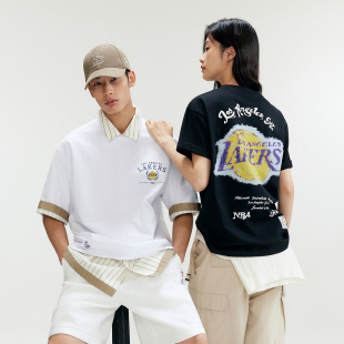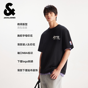 湖人队印花短袖 春夏新款 杰克琼斯男装 T恤宽松打底衫 NBA联名