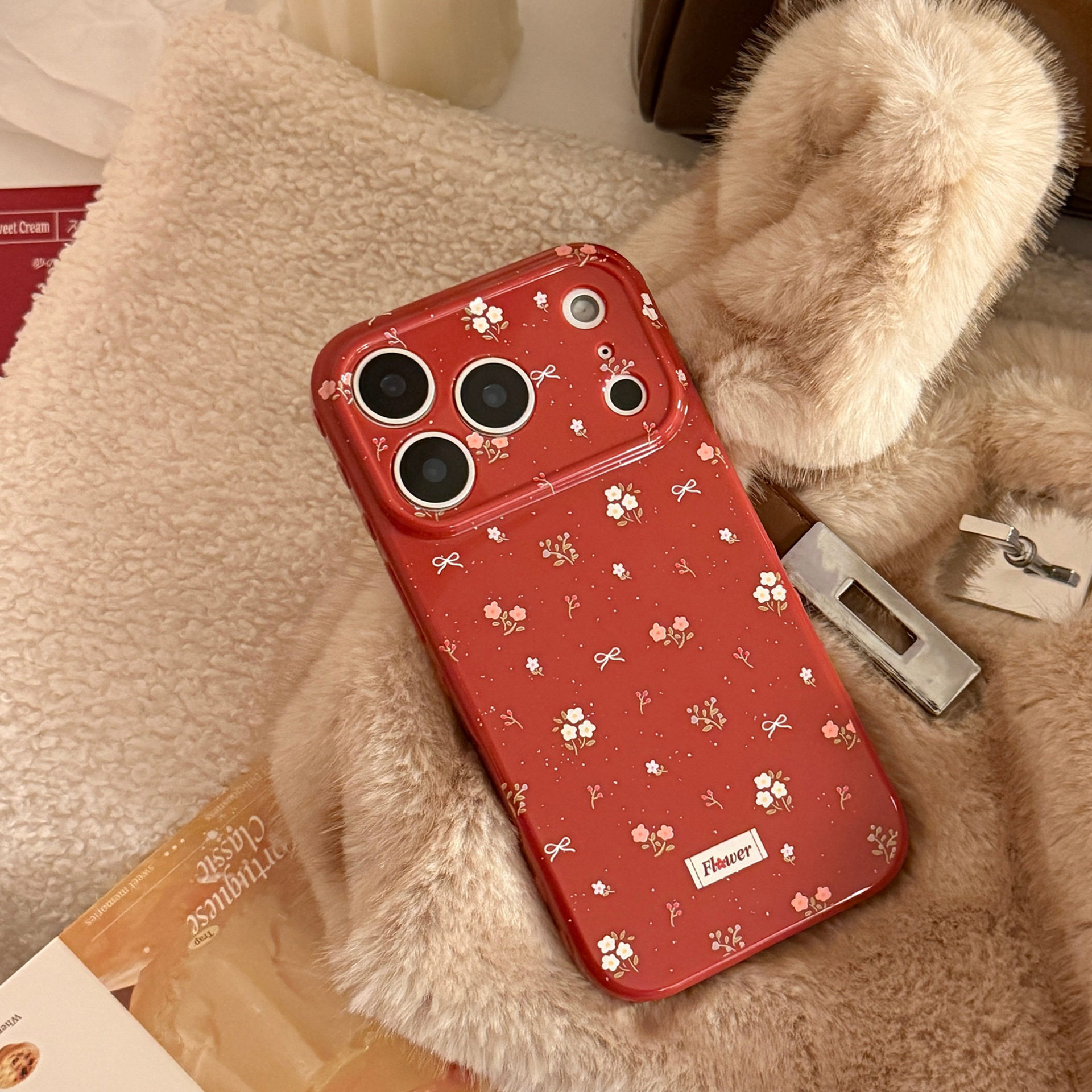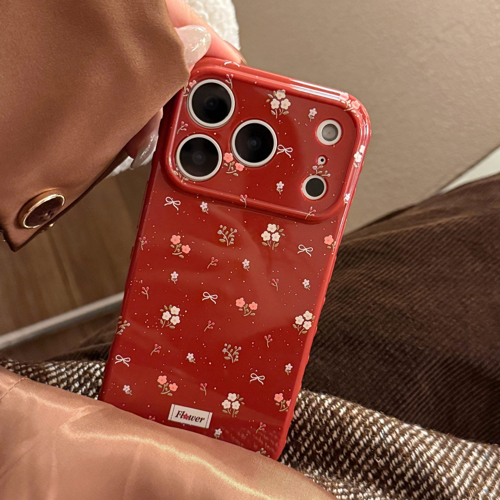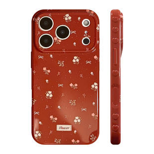 16PM防摔15pro软套 新年本命年红色小碎花适用苹果17promax手机壳iPhone17PRO可爱女款 17相机触控按键包裹