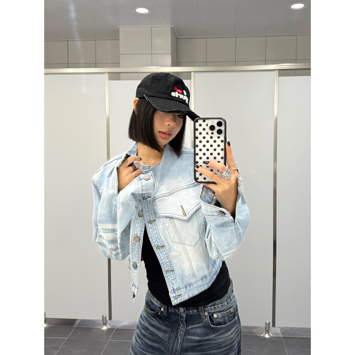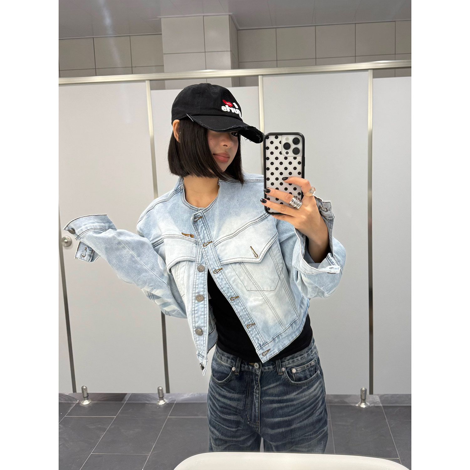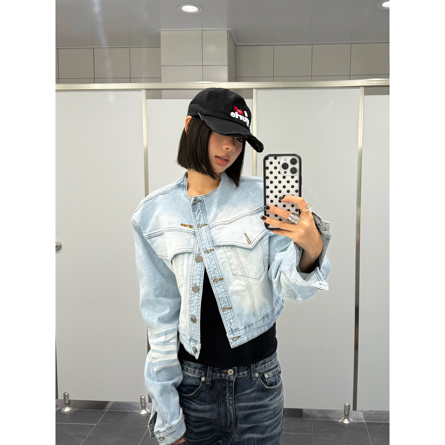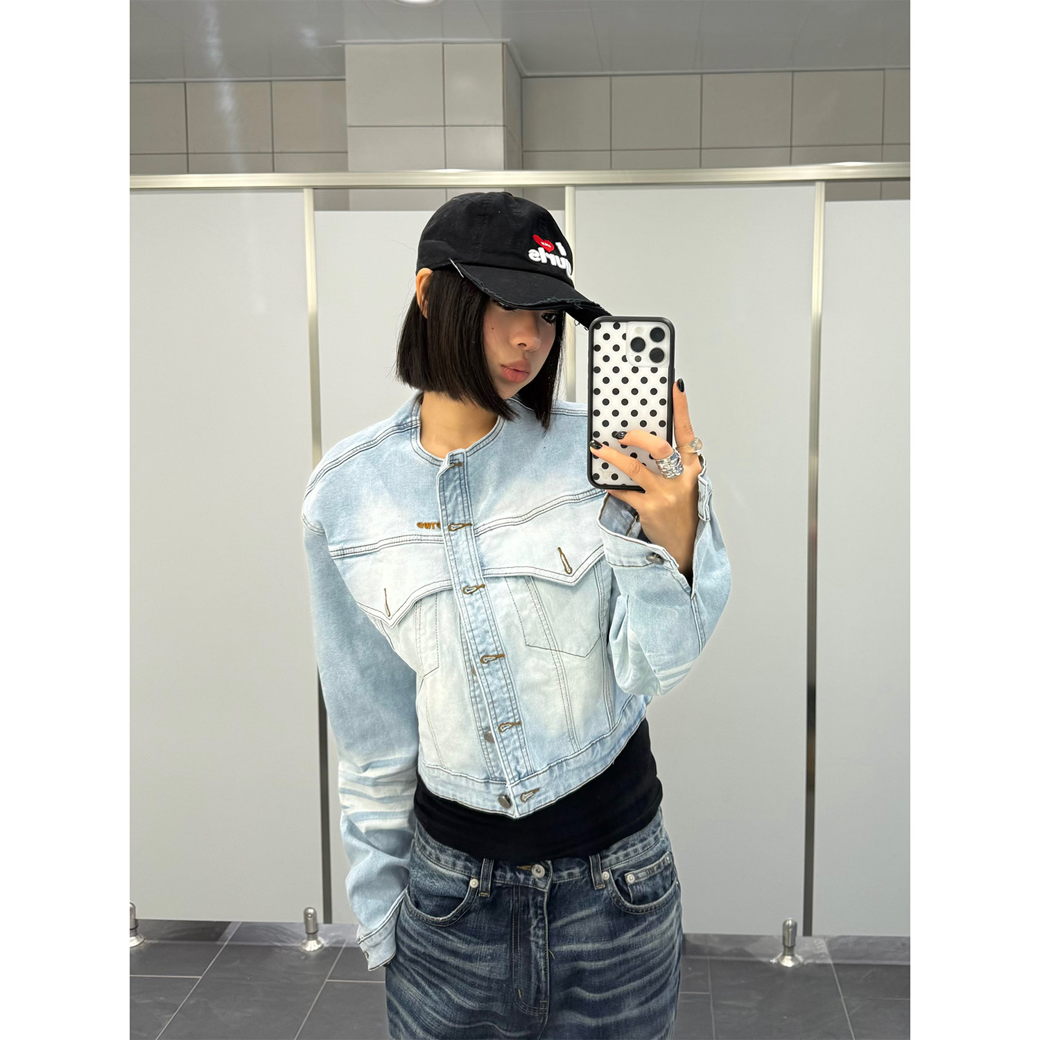 外套ins 复古猫须磨白立领牛仔夹克女水洗酷飒风宽松短款 F383 美式