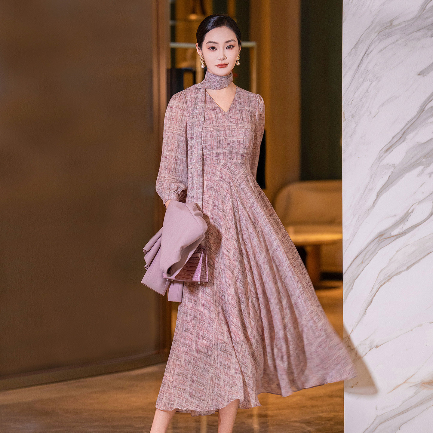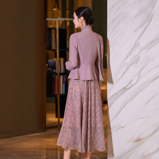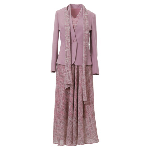 气质减龄西装 粉色时尚 女装 女2026春新款 外套印花连衣裙两件套 套装