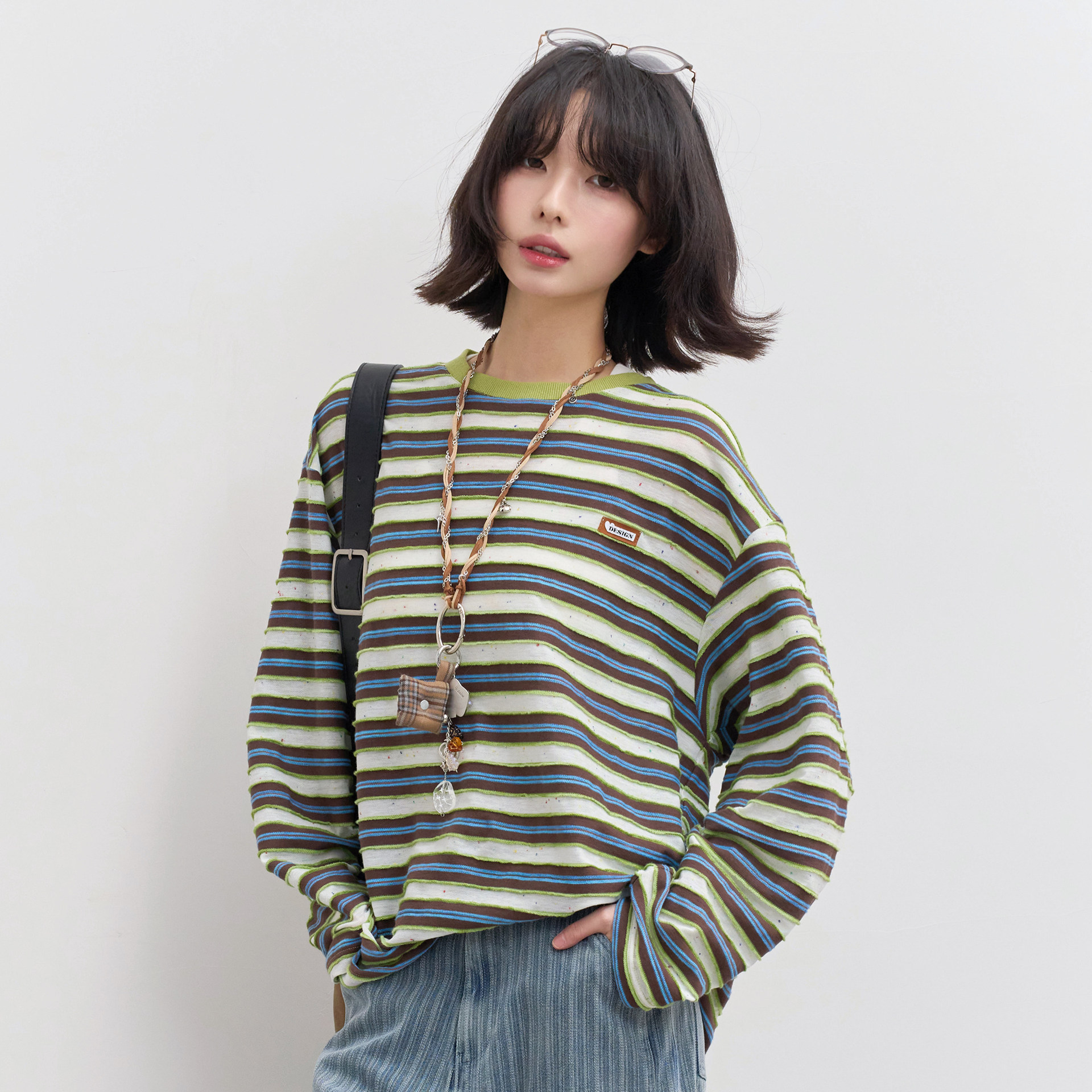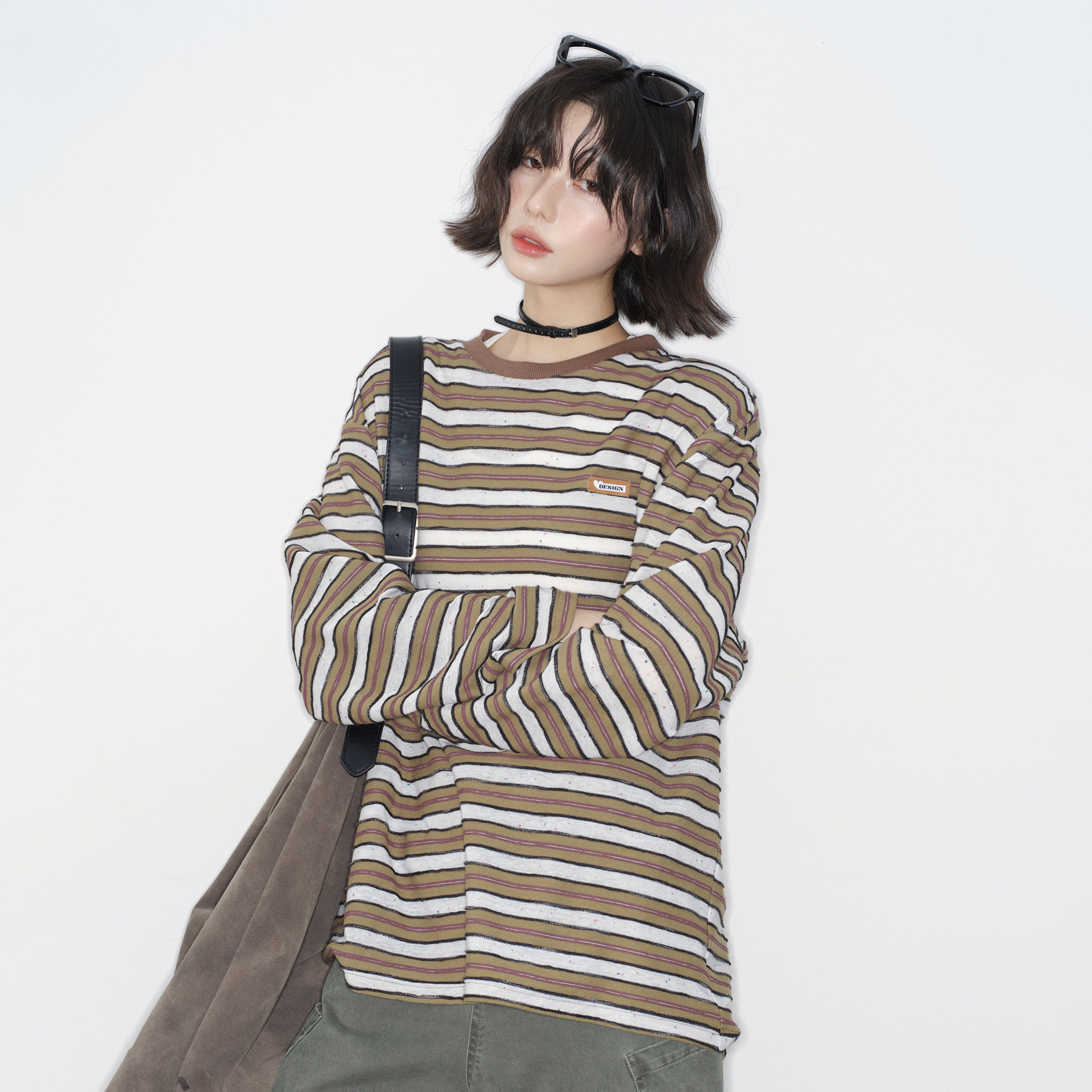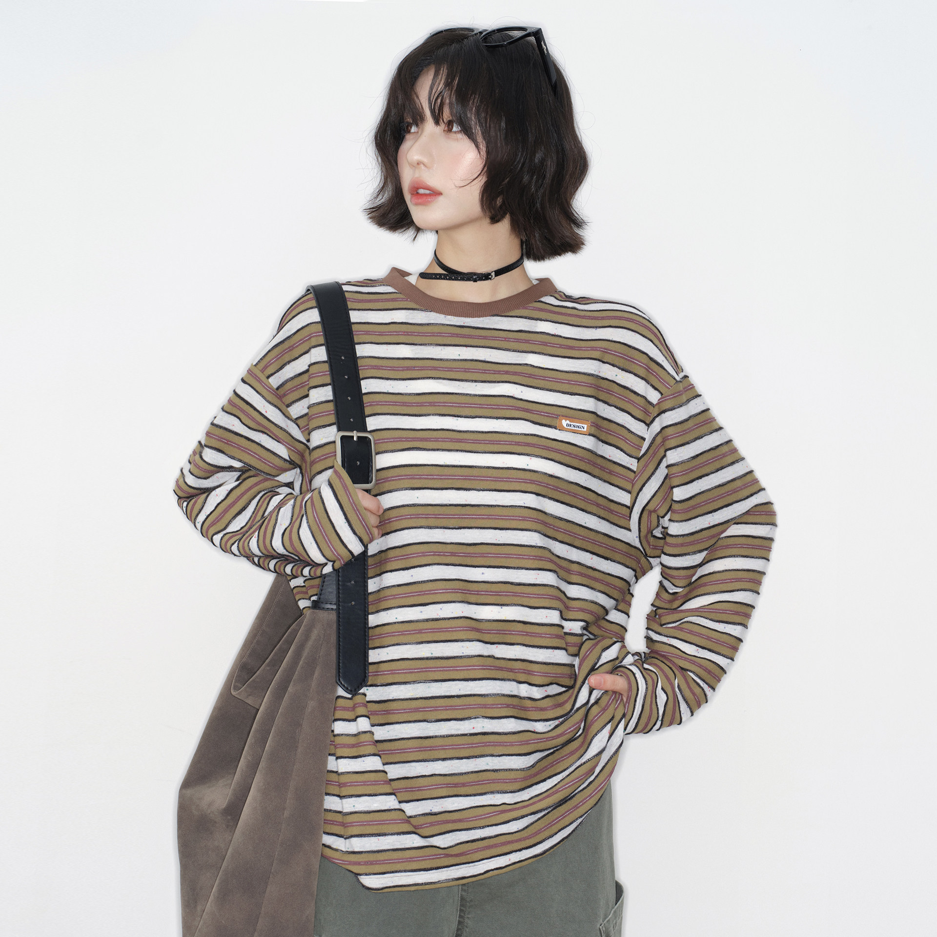 2026年新款 T恤女春季 宽松中性风圆领上衣 条纹长袖 万有引力博物馆