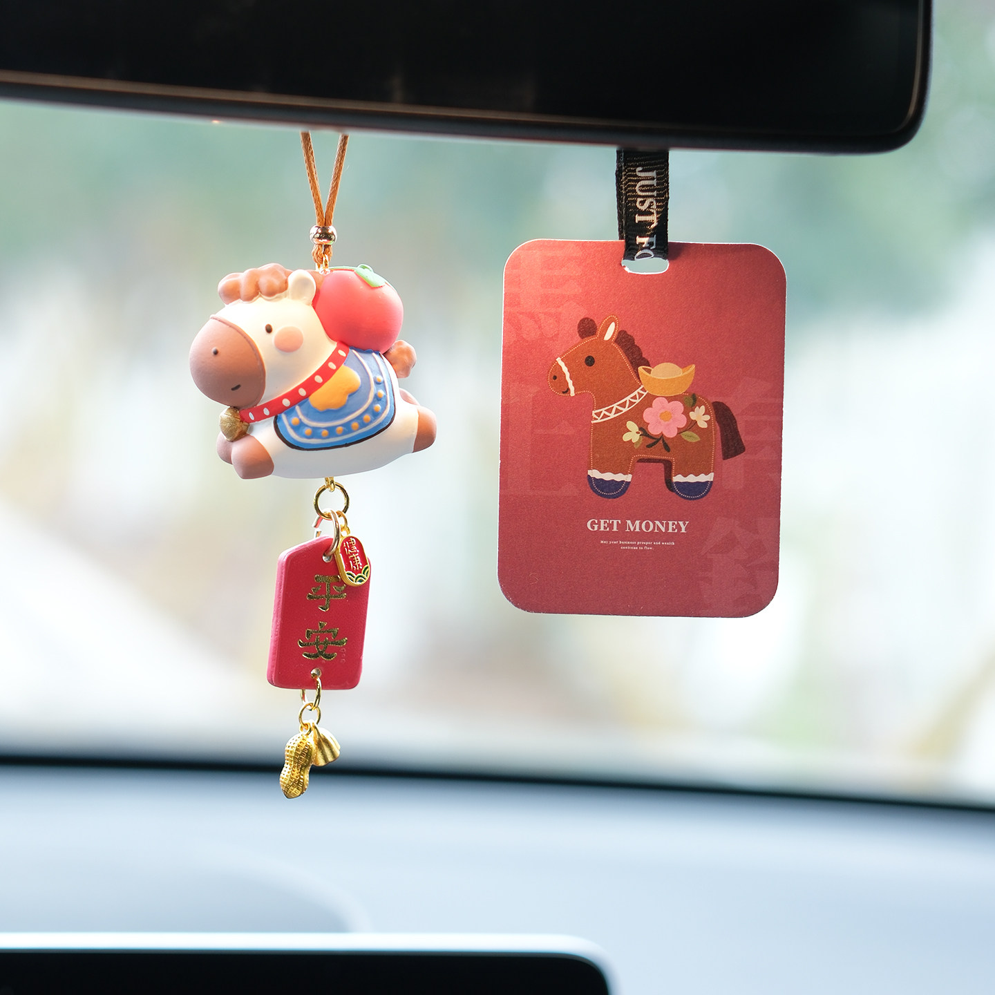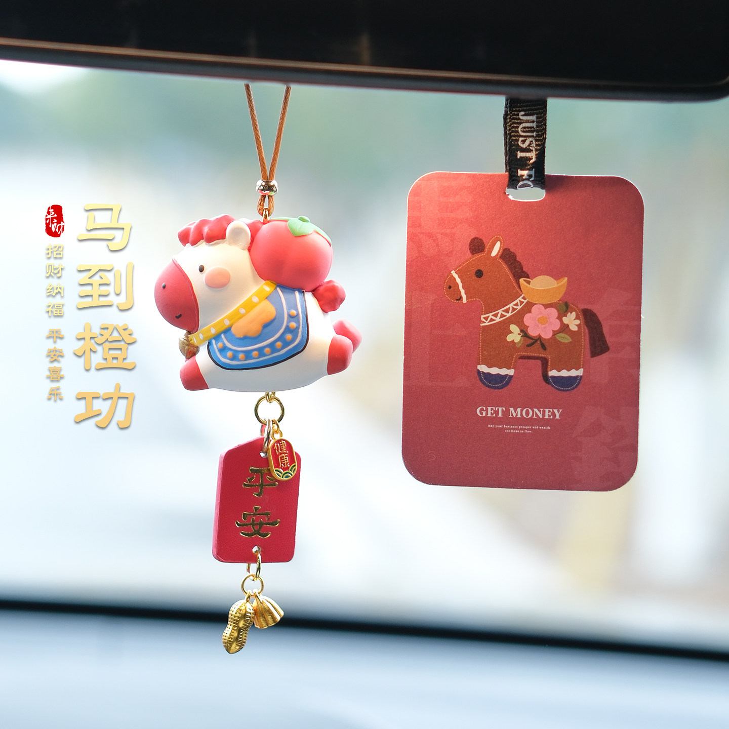 2026马年车载挂件小马公仔吉祥物汽车后视镜挂饰吊坠创意新年礼物