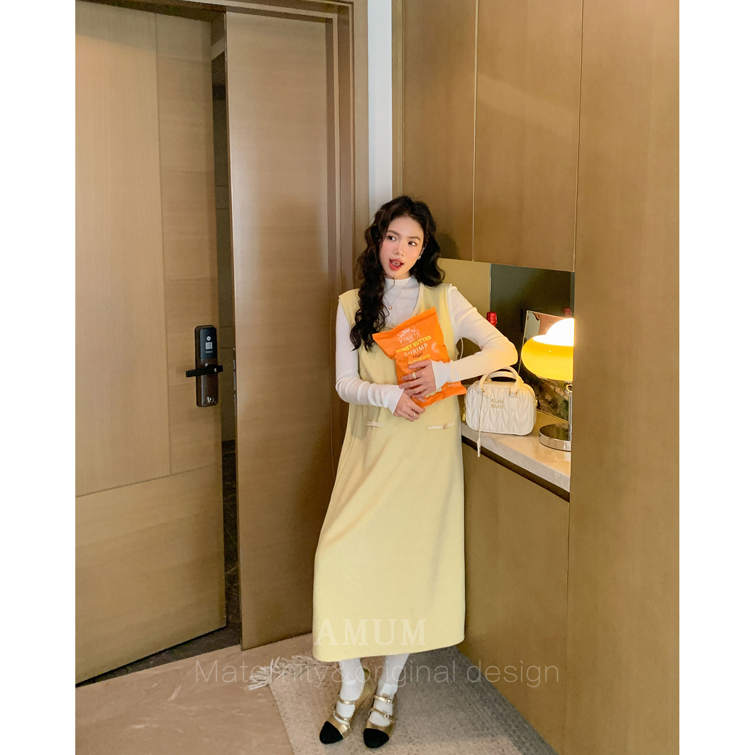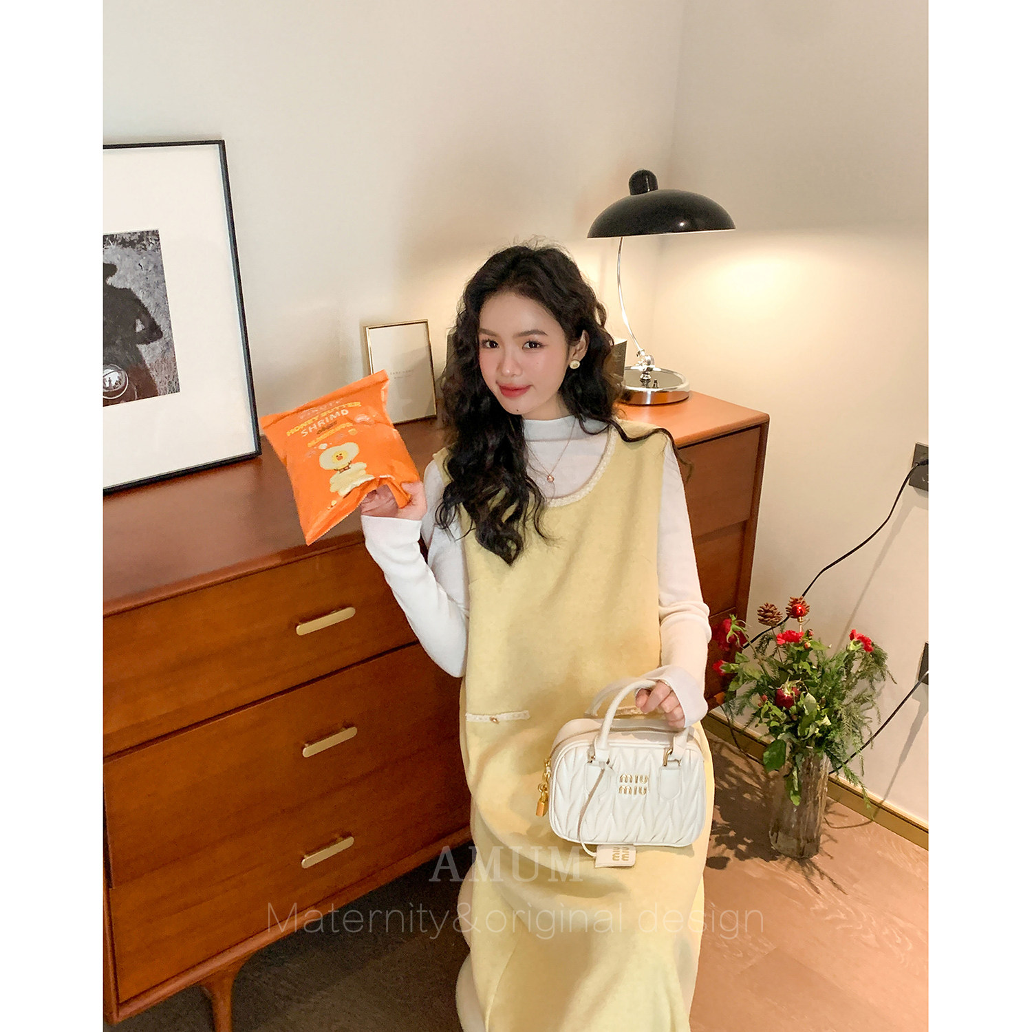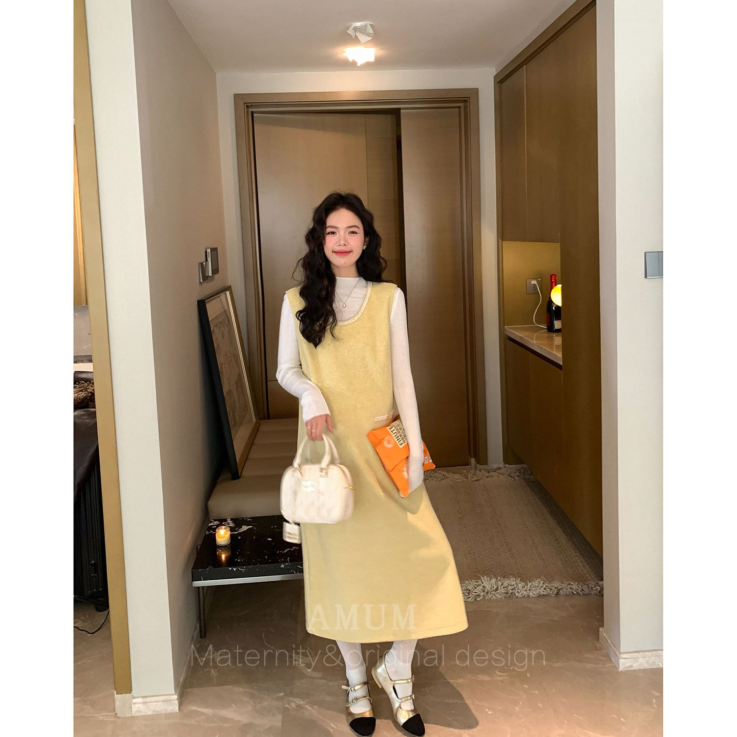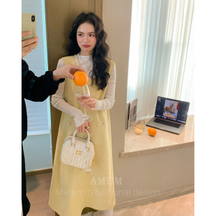 韩系温柔雪尼尔宽松无袖 甜心奶酪 叠穿气质背心裙 AMUM孕妇装