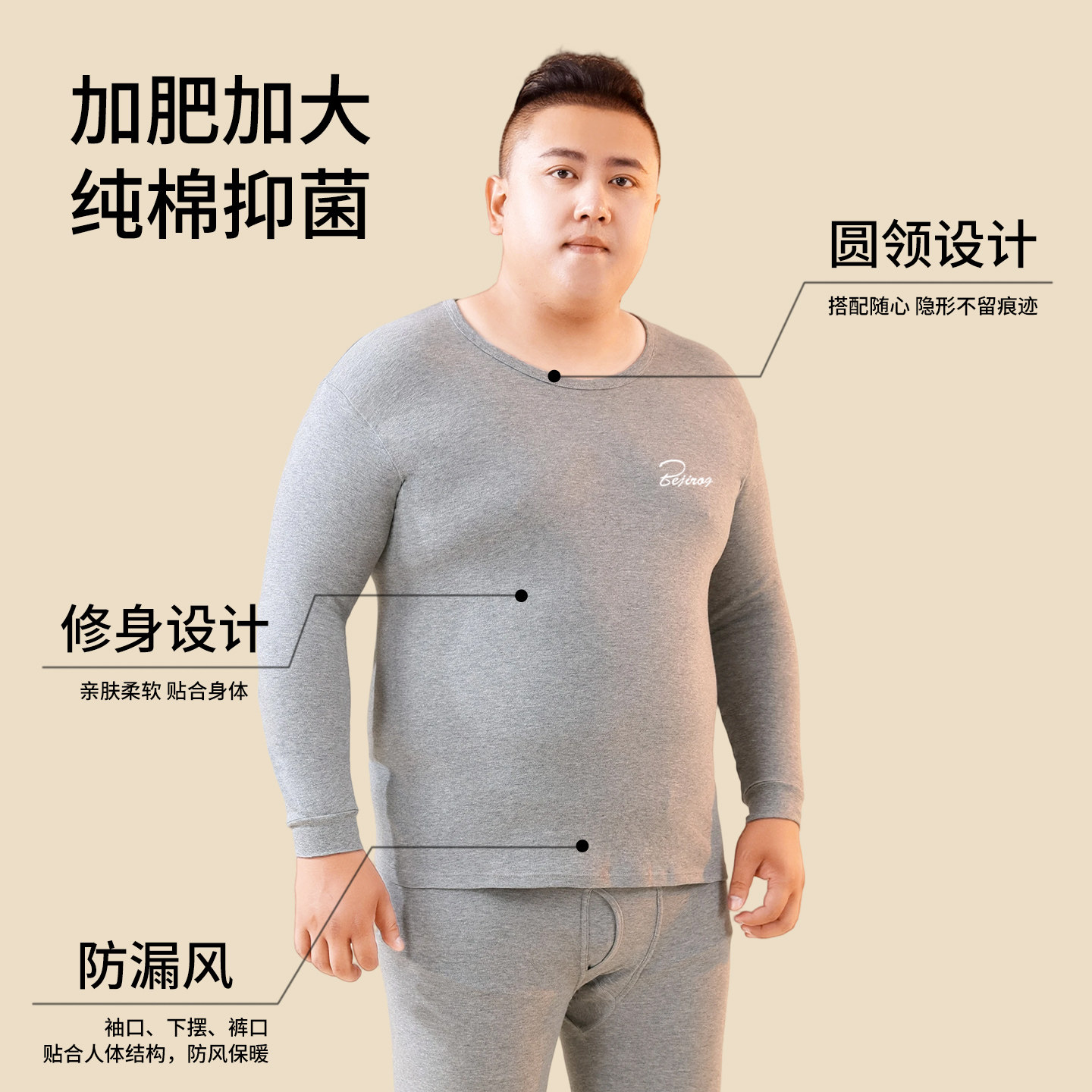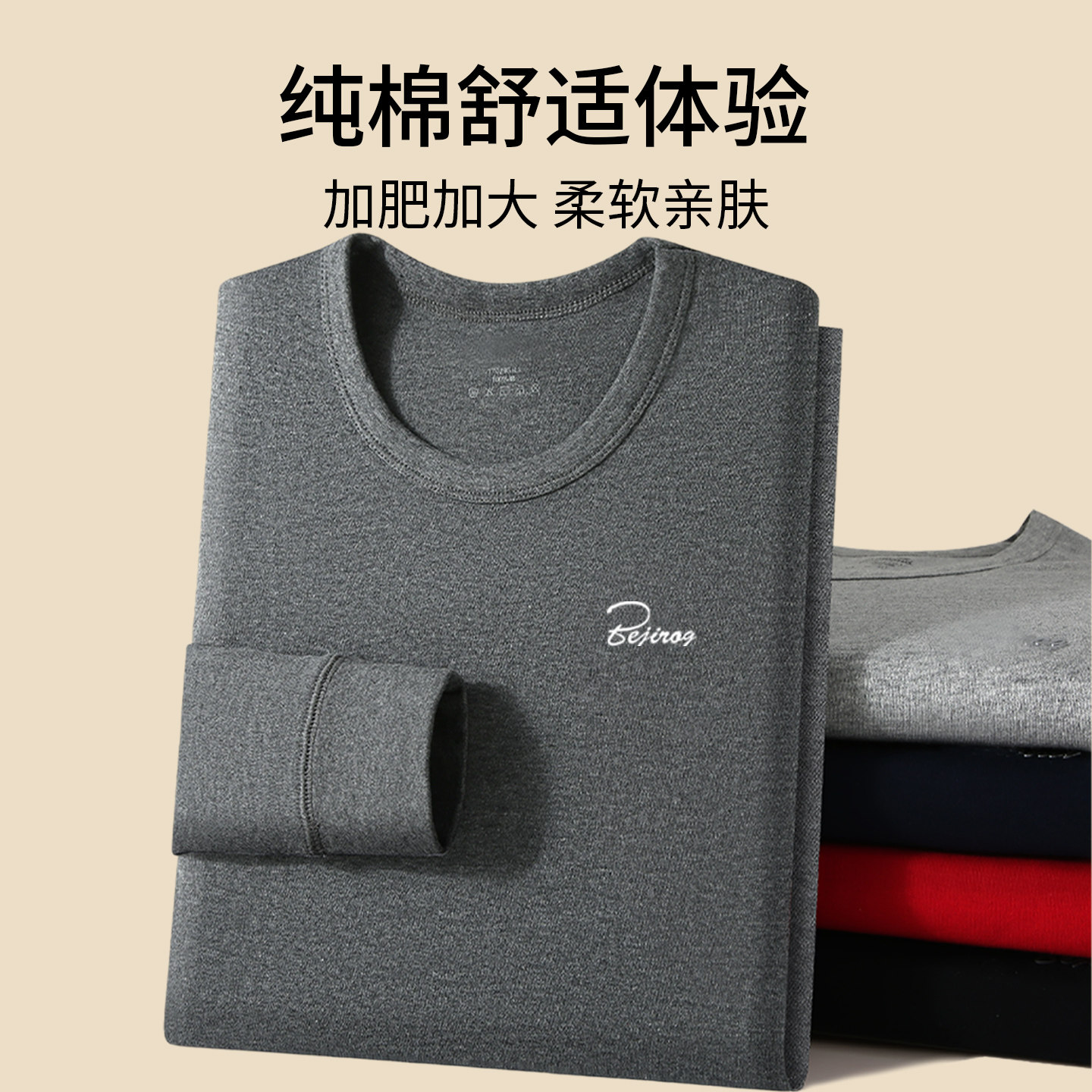2026新款 纯棉加肥大码 棉毛衫 打底线衣衬裤 北极绒秋衣秋裤 套装 男士