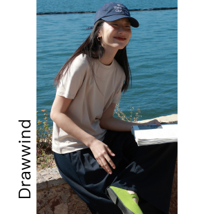上衣 果冻T恤女宽松纯色圆领正肩短袖 画风drawwind2026春夏季 新款