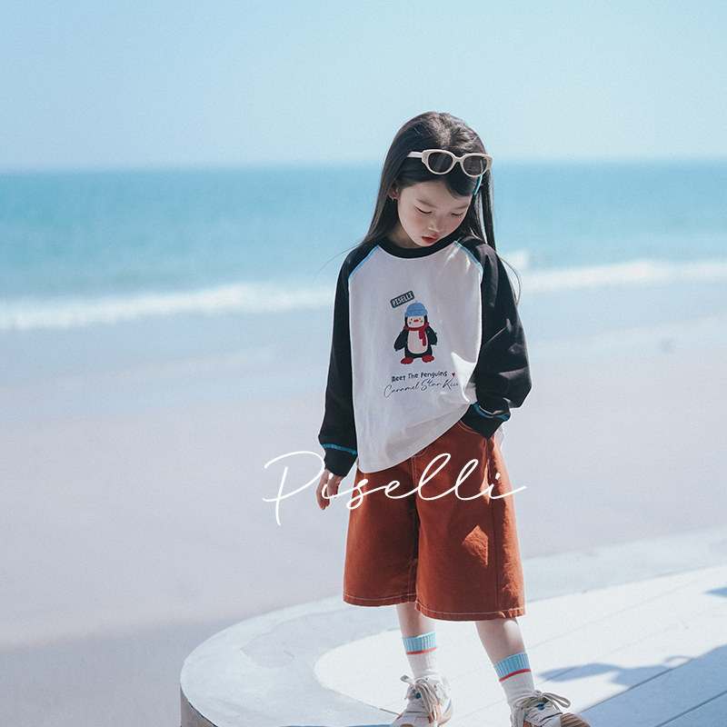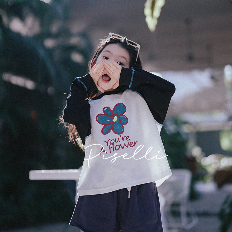 t恤儿童打底衫 PISELLI史豌豆童装 印花长袖 插肩袖 女童2026春秋新款